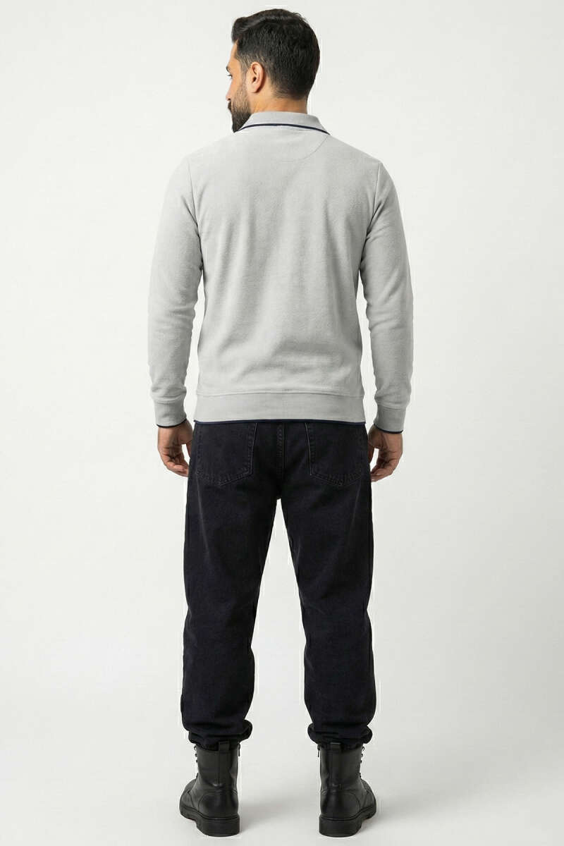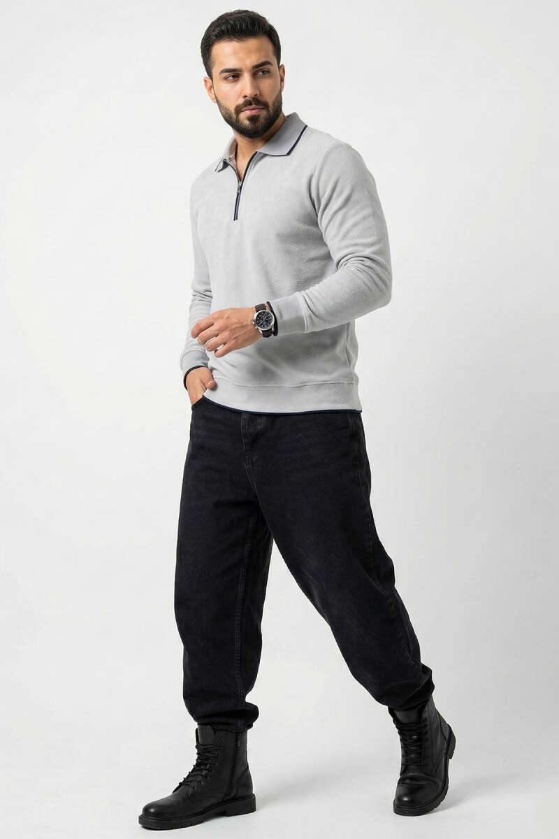 Yarım Fermuarlı Ribanalı Erkek Sweatshirt Gri