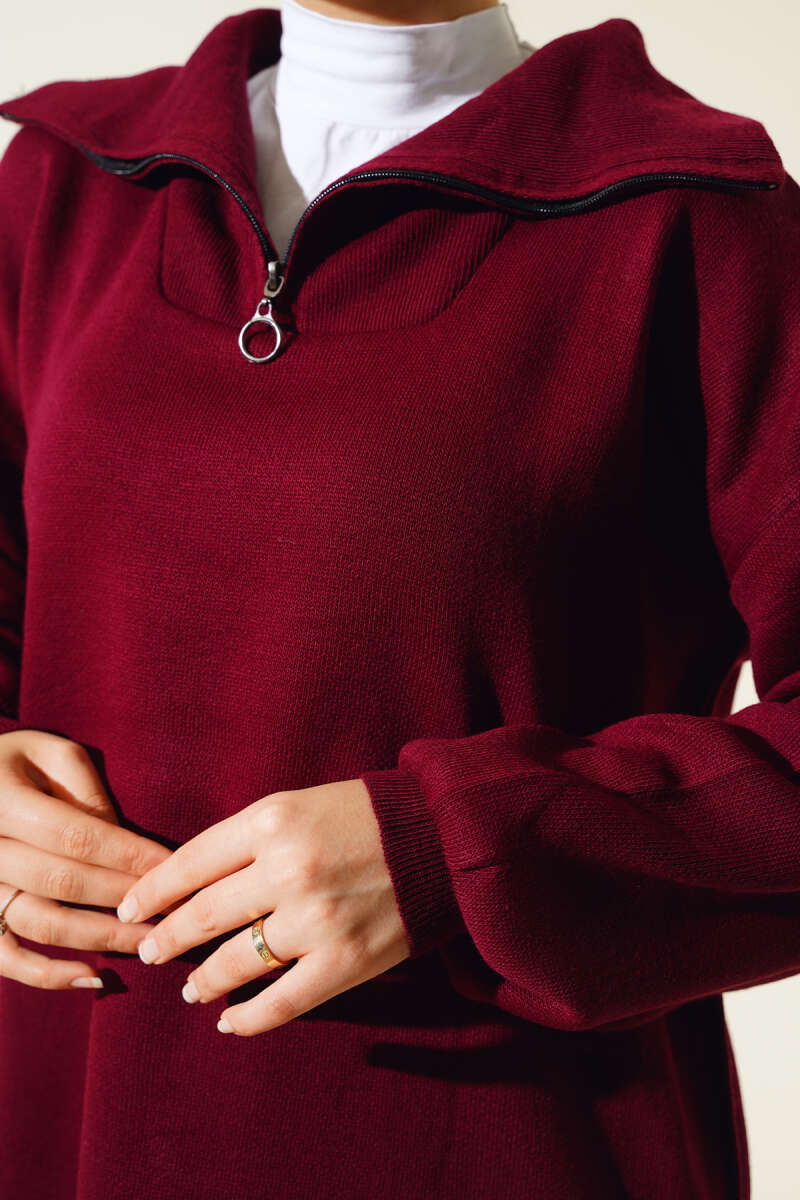 Yatay Çizgi Detaylı Basic Triko Tunik Vizon