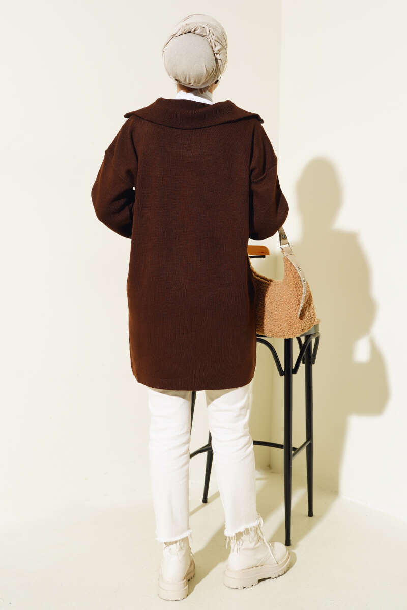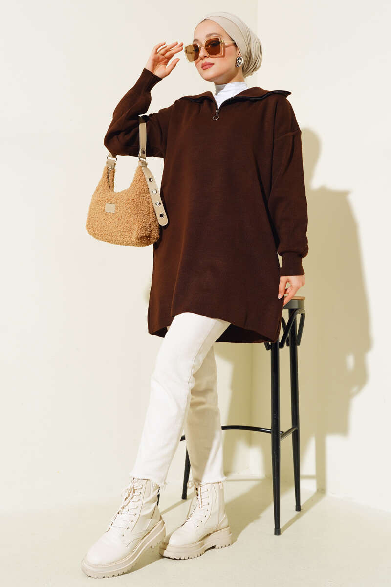 Yatay Çizgi Detaylı Basic Triko Tunik Vizon