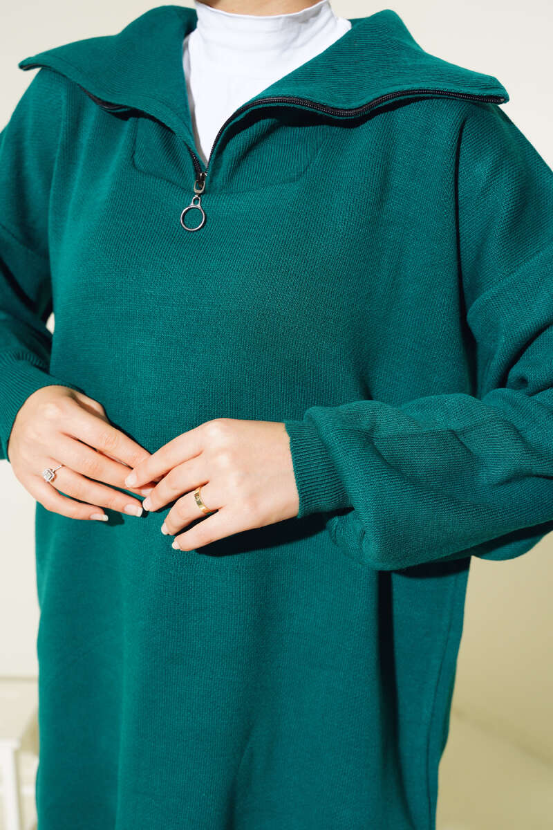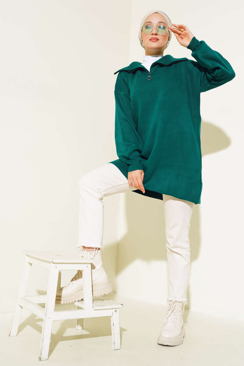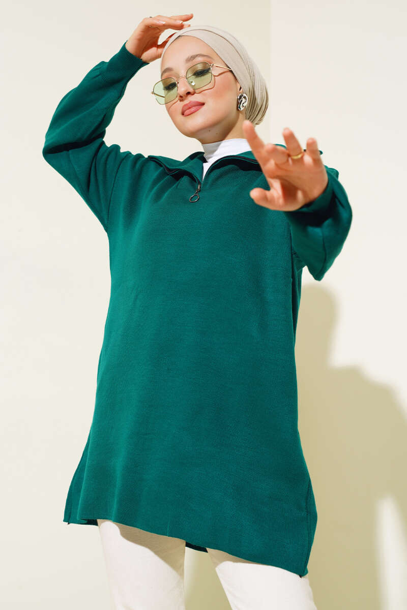 Balıkçı Yaka Balon Kol Triko Tunik Nefti
