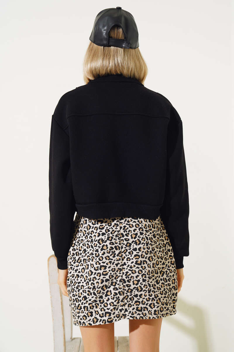 Yıldız Baskılı Kapüşonlu Şardonlu Sweat Siyah