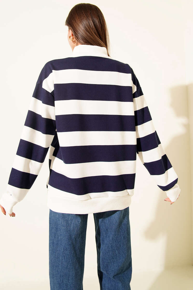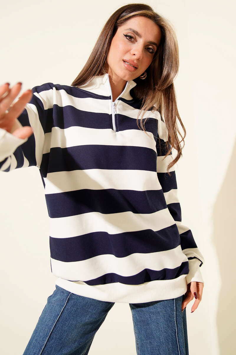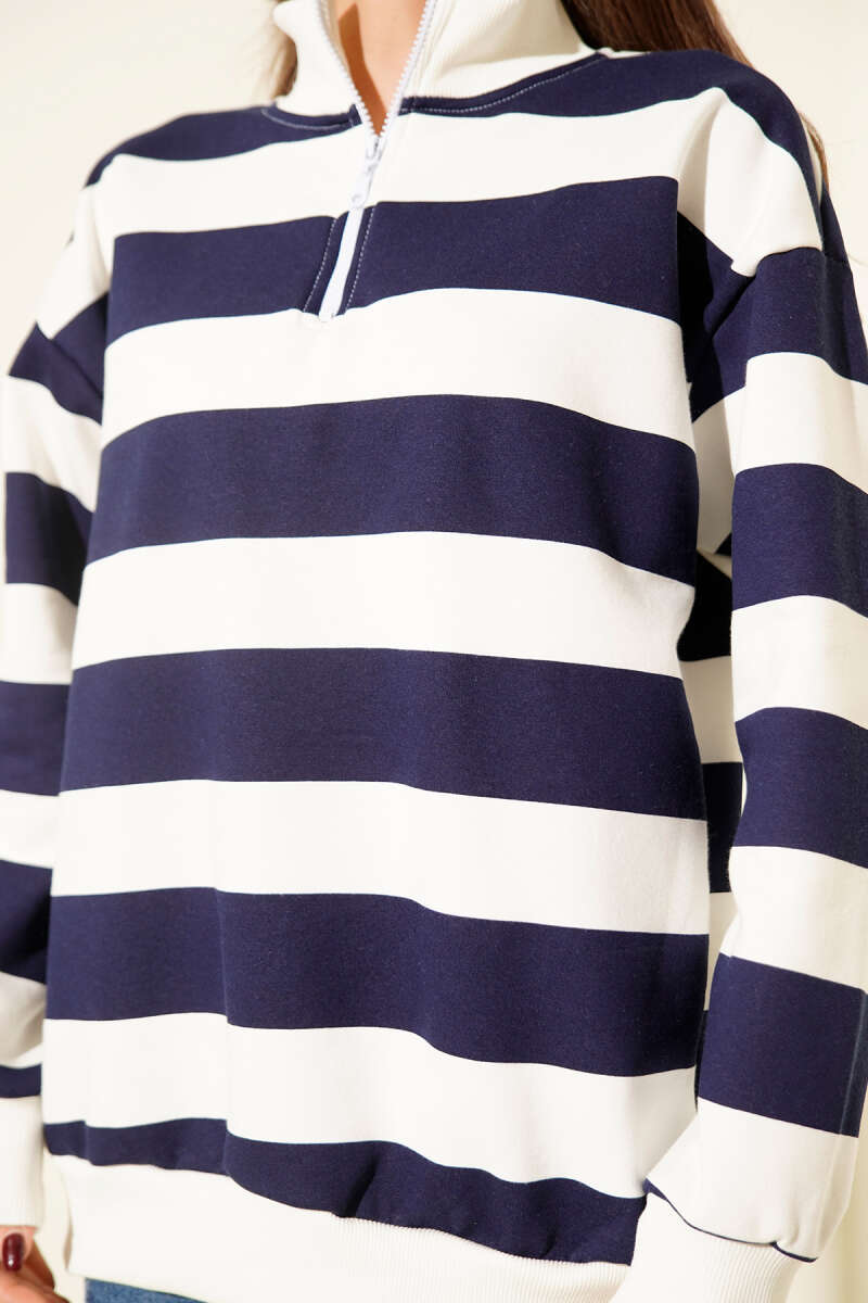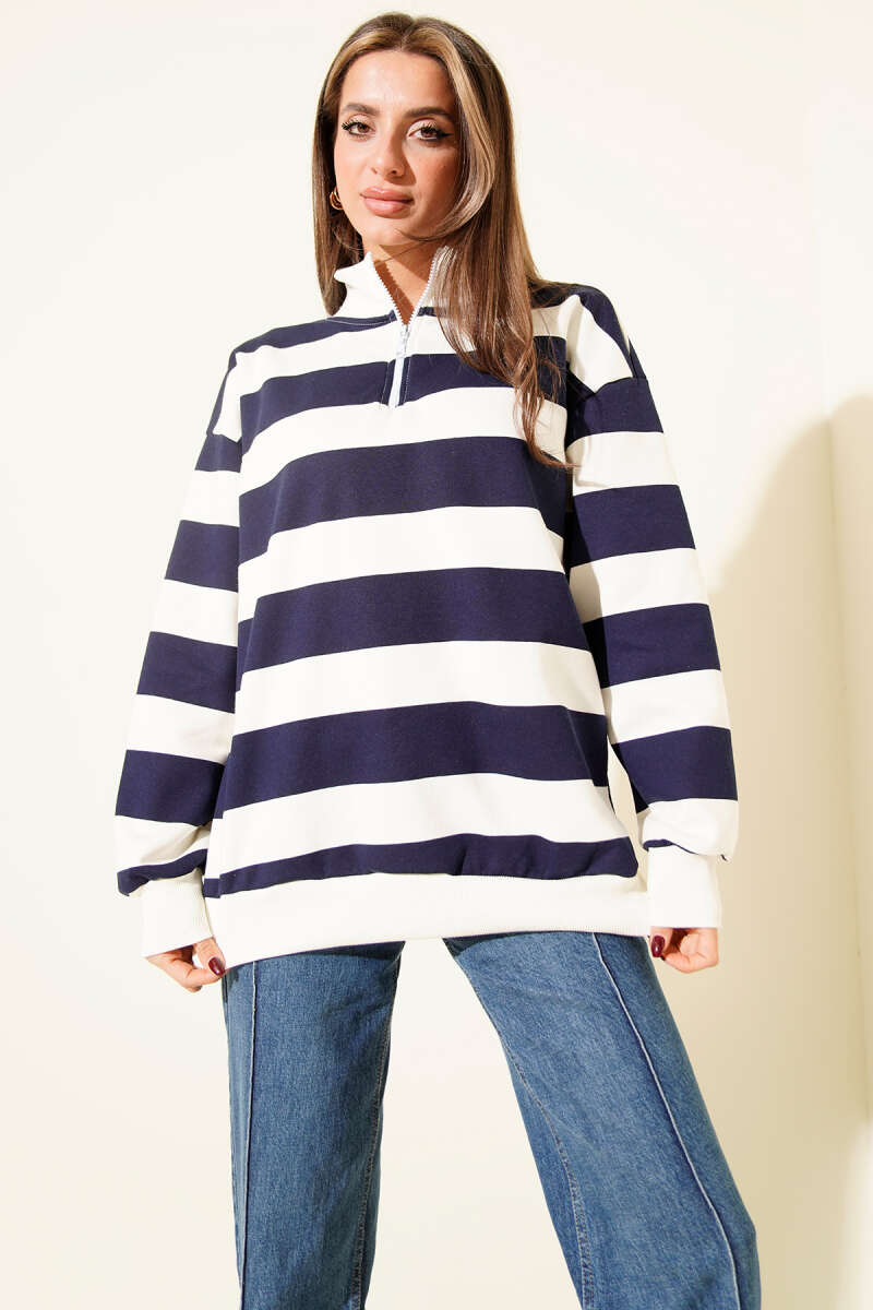 Yarım Fermuarlı Şardonlu Sweatshirt Lacivert
