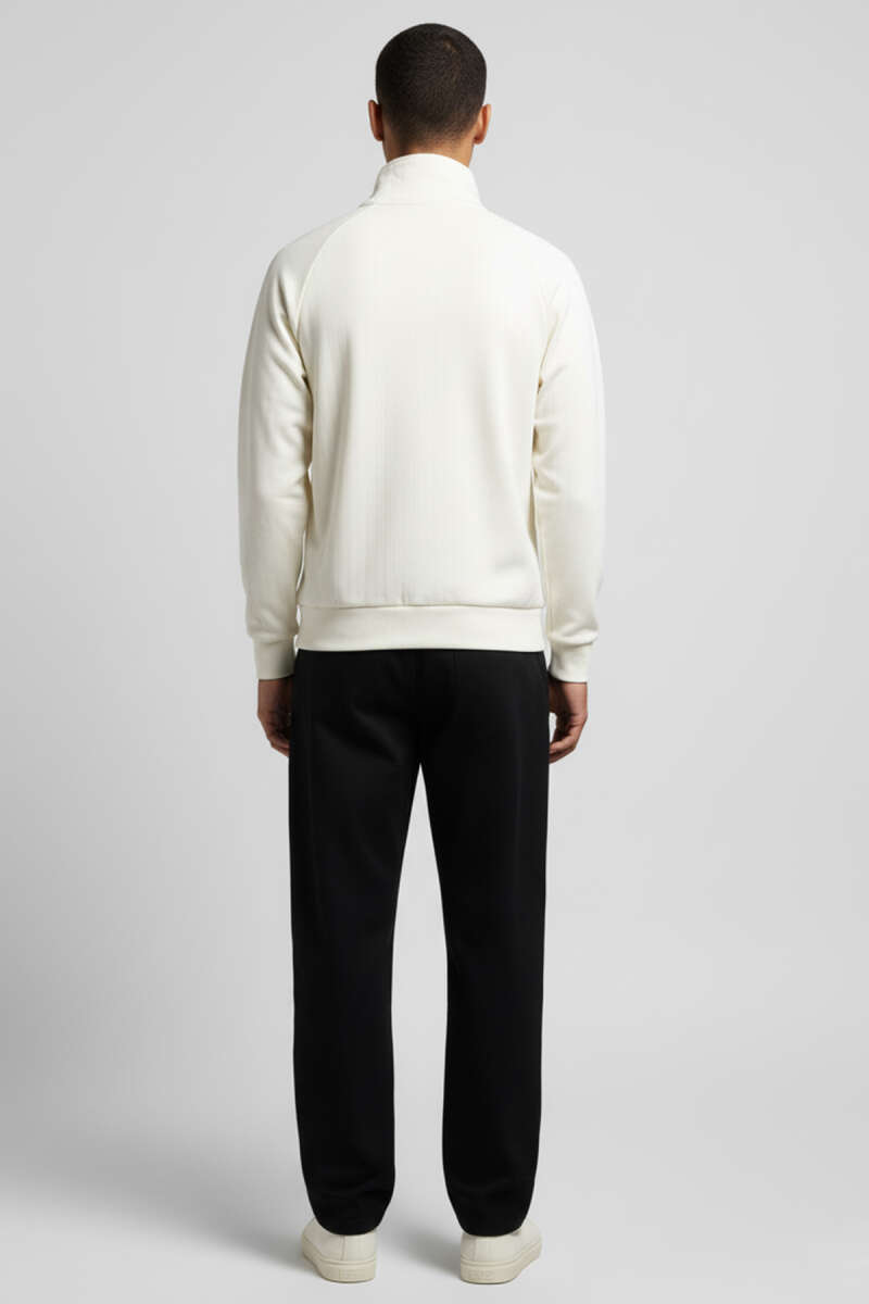 Polo Yaka Uzun Kollu Erkek Triko Sweatshirt Beyaz