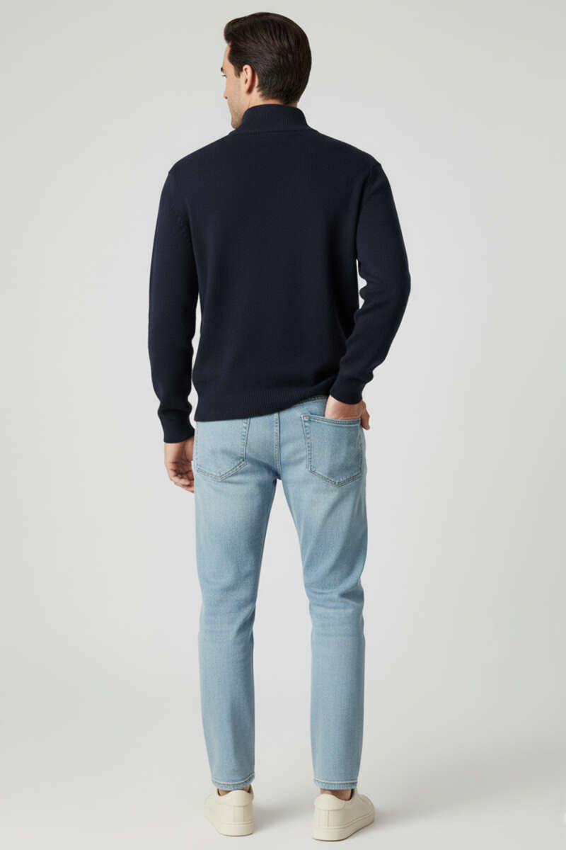 Brit Düğmeli İp Kuşaklı Tunik İkili Takım Lacivert