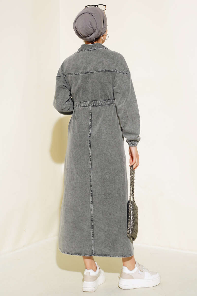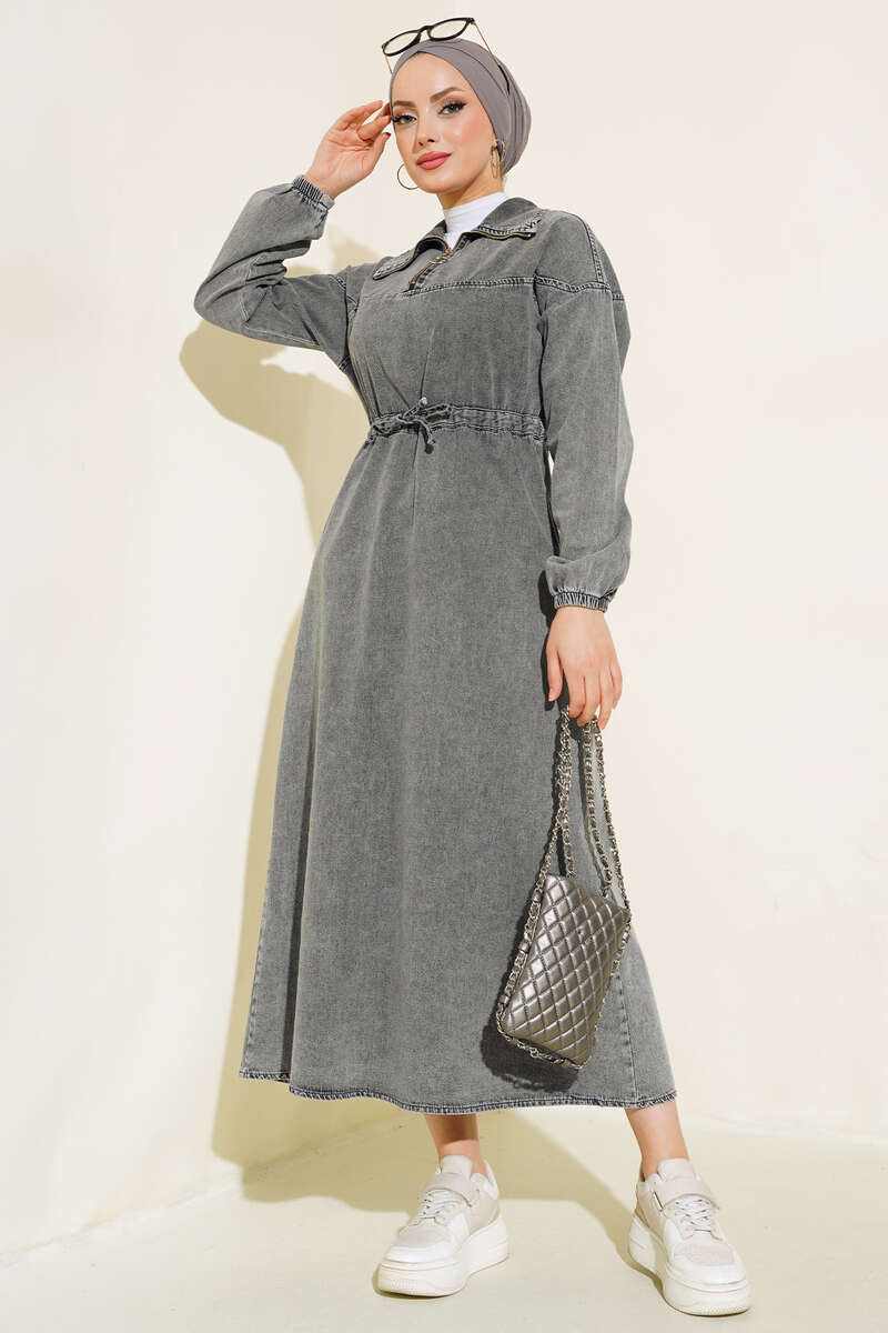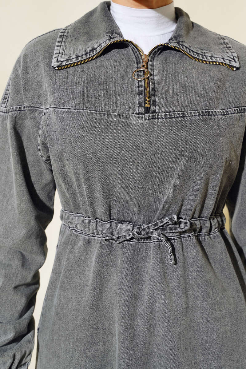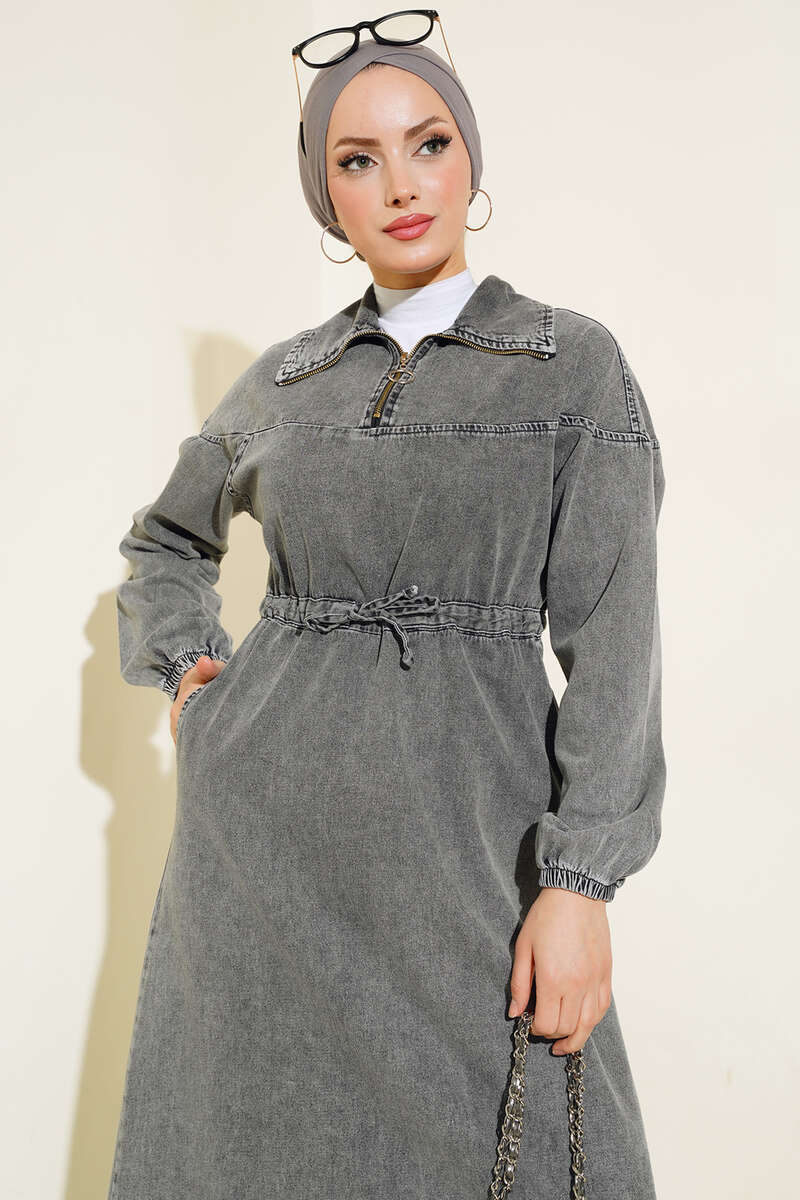 Yeni sezon kot elbise modelimiz sizlerle beraber. Elbisemizin yakası yarım fermuarlıdır. Kol bilekleri lastiklidir. Elbisemizin beli tünelli olup, ip bağcıklıdır. İki adet cebi vardır. Astarsızdır. Hem şık hem sportif tasarımlı elbisemiz tam size göre.