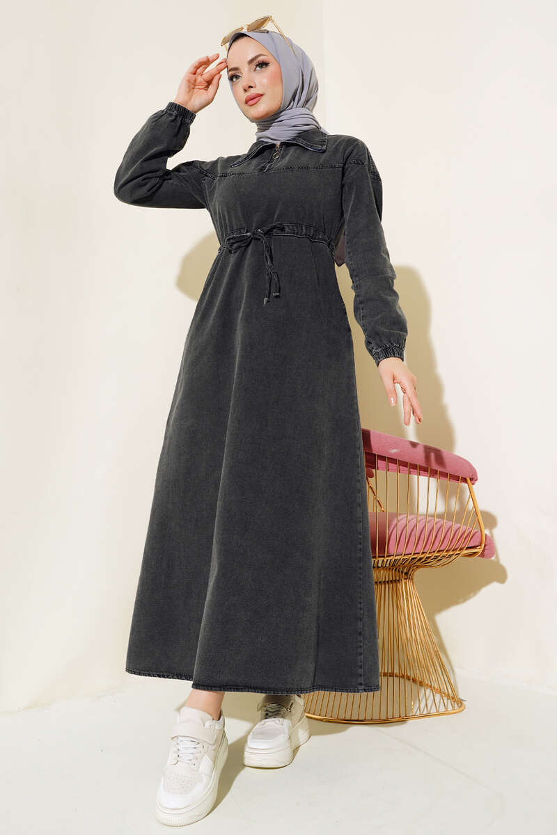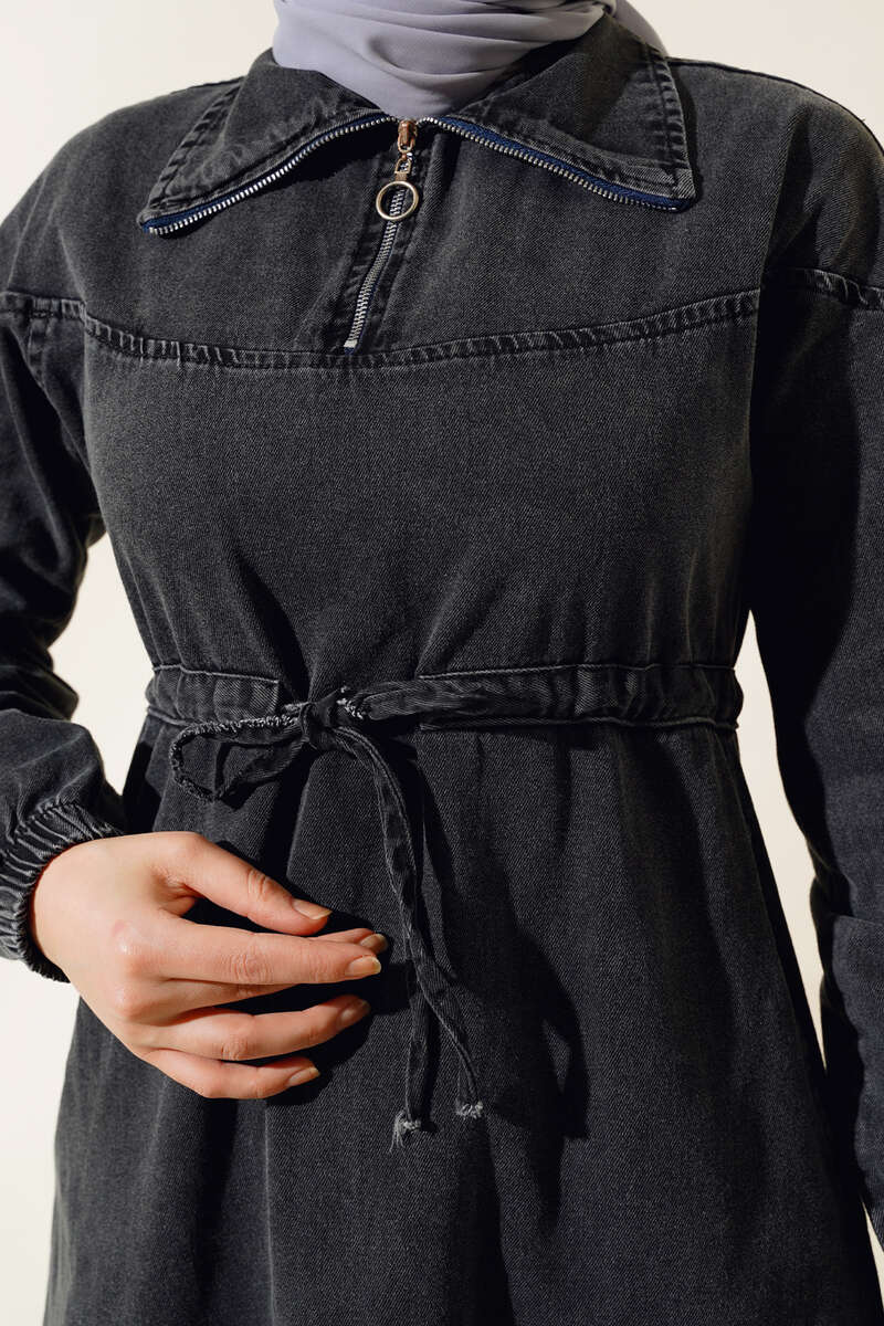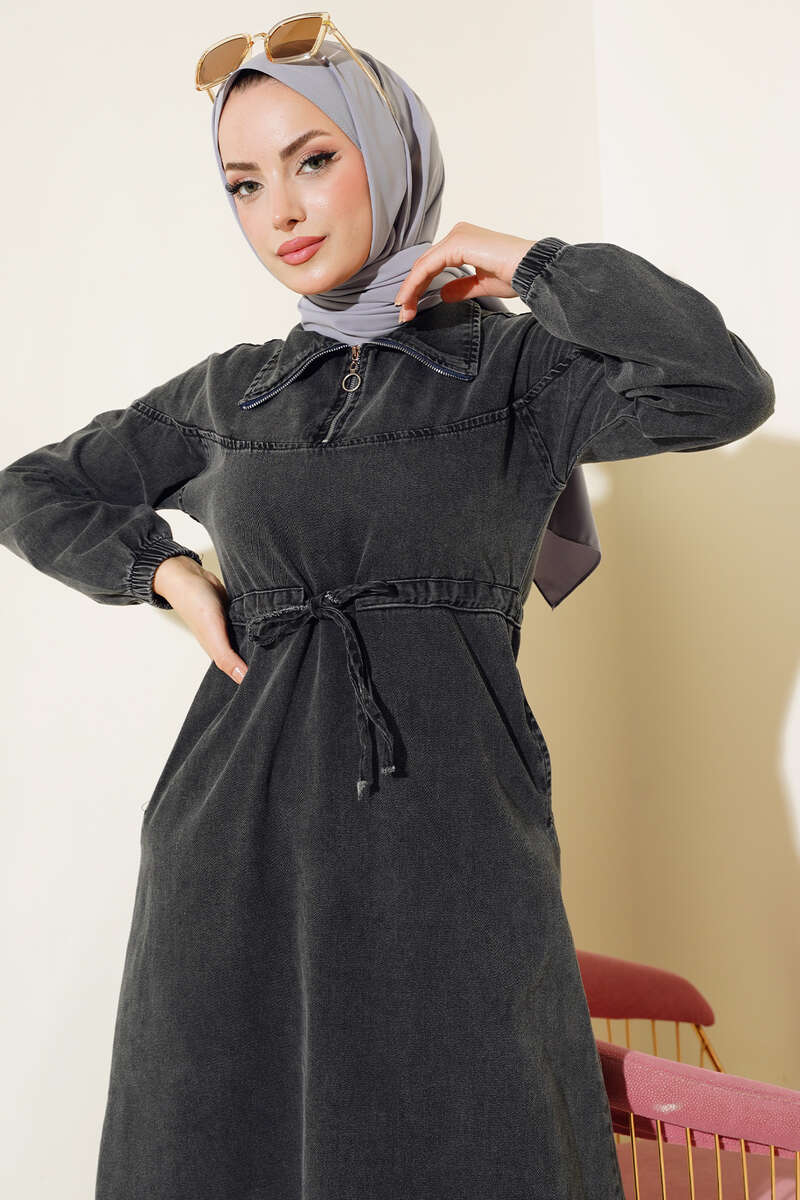 Yeni sezon kot elbise modelimiz sizlerle beraber. Elbisemizin yakası yarım fermuarlıdır. Kol bilekleri lastiklidir. Elbisemizin beli tünelli olup, ip bağcıklıdır. İki adet cebi vardır. Astarsızdır. Hem şık hem sportif tasarımlı elbisemiz tam size göre.