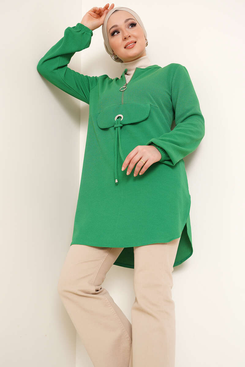 Yarım Fermuarlı Tunik Yeşil