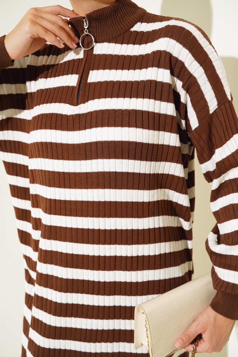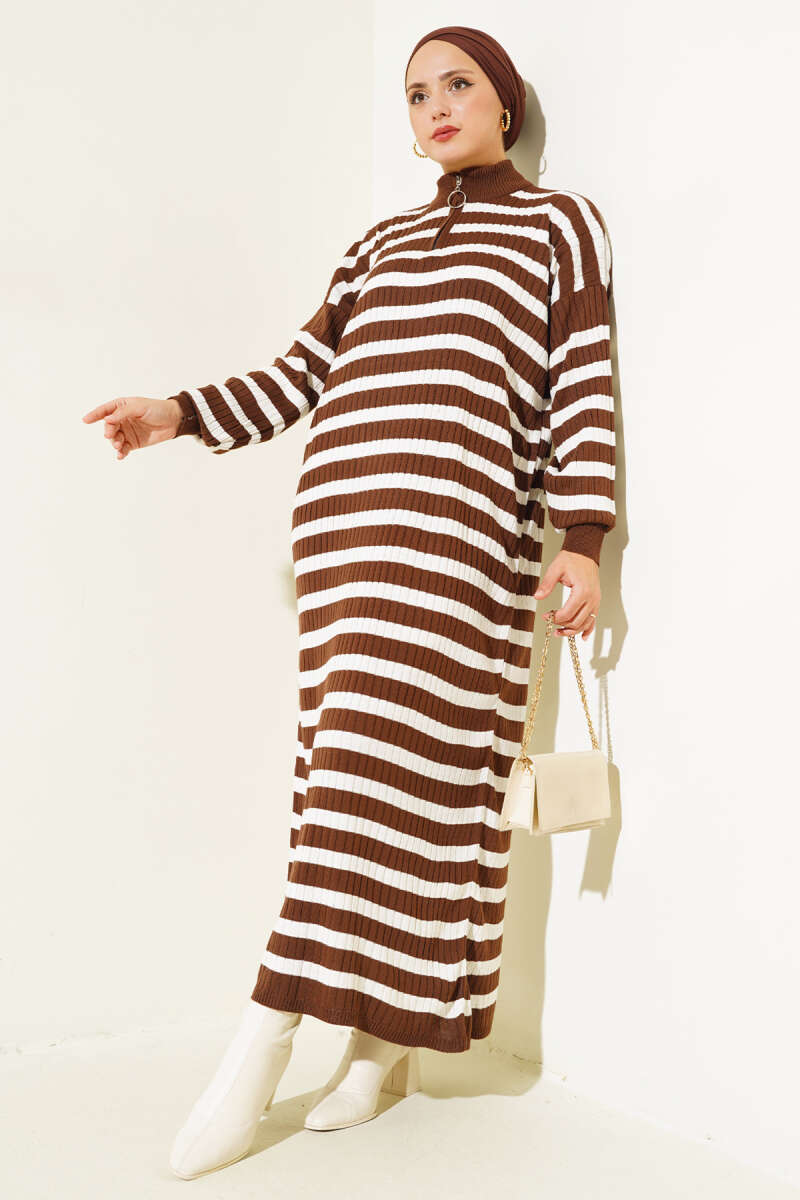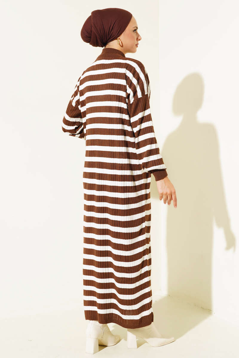 Gömlek Yaka Düğmeli Triko Elbise Kahve