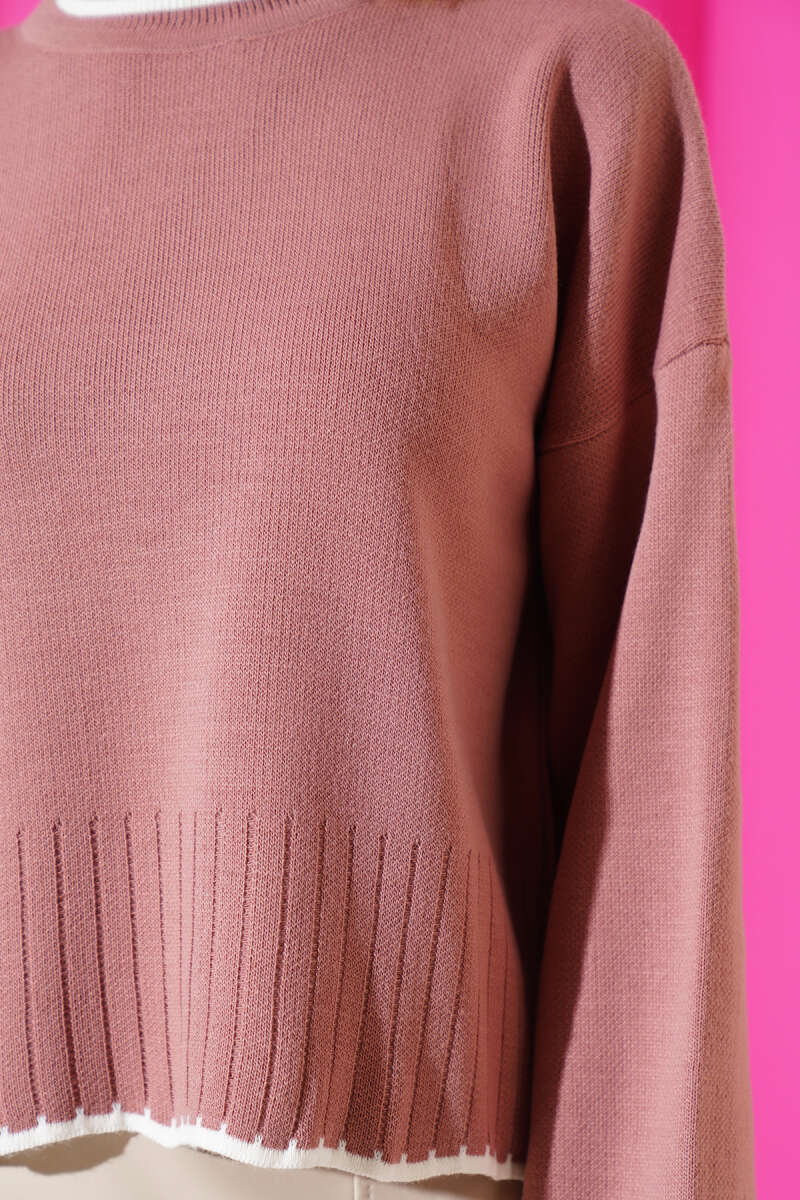 Yarım Fermuarlı Loyşa Şeritli İkili Takım Füme