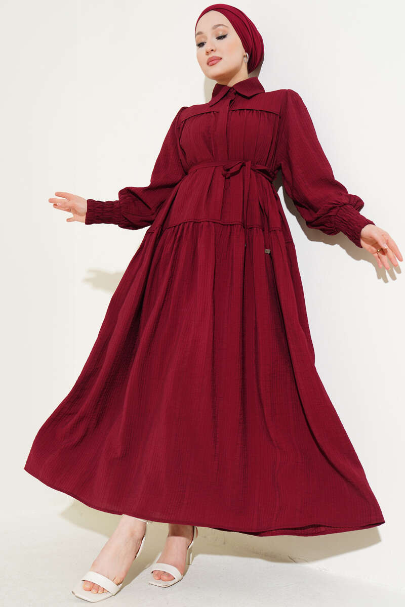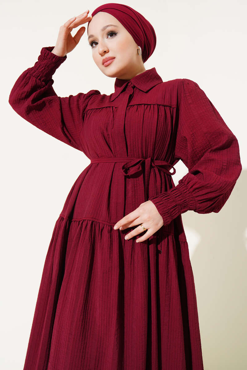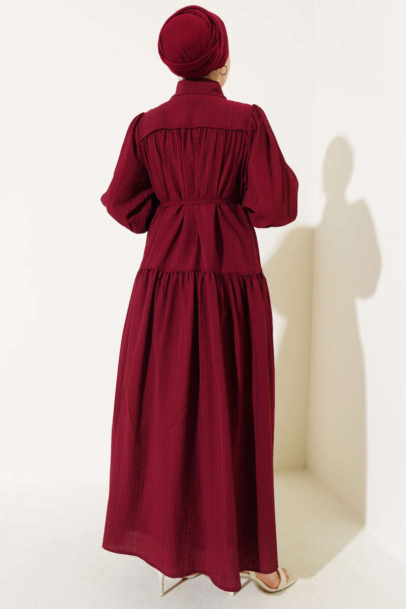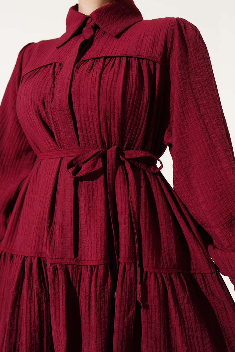 Şerit Ajur Desen Triko Elbise Gül Kurusu
