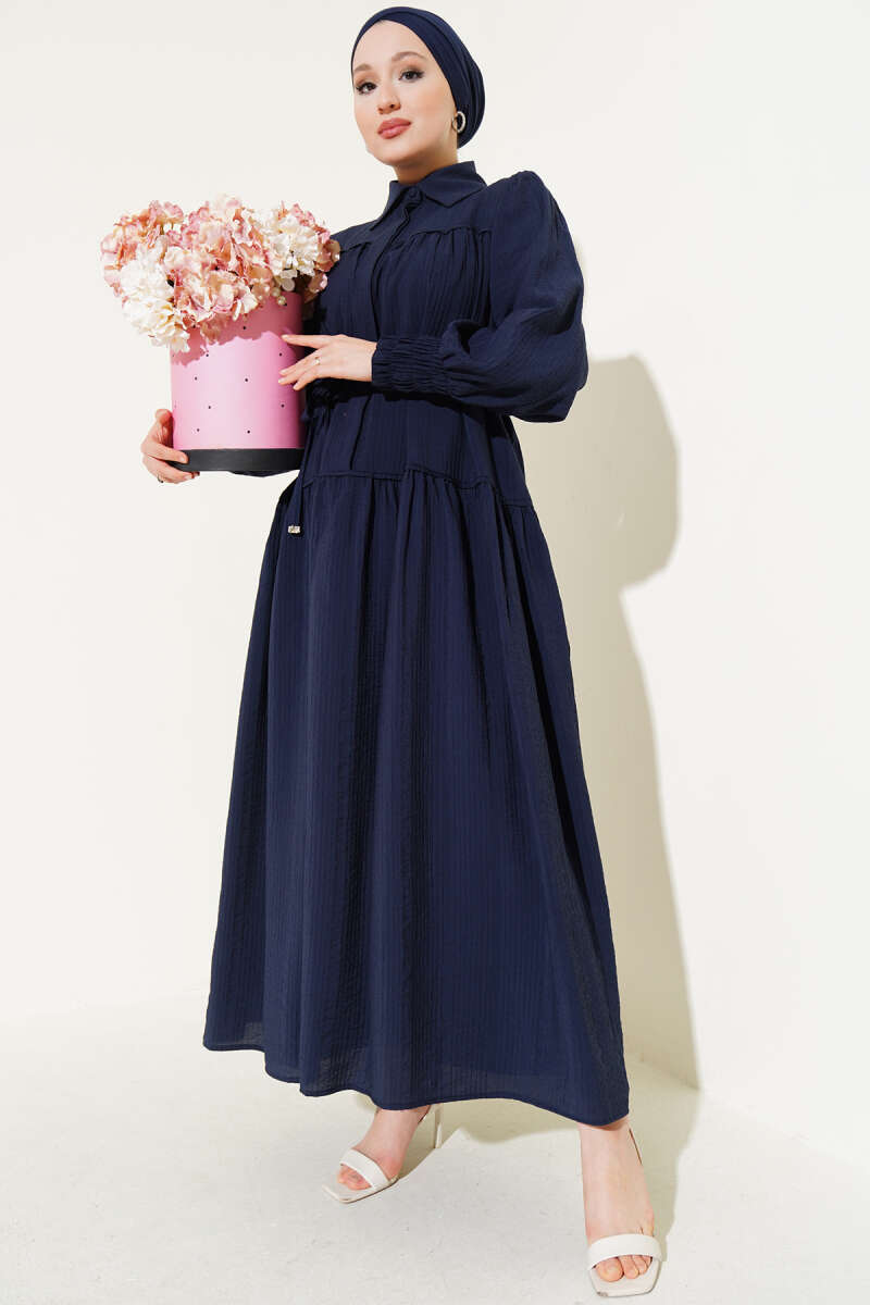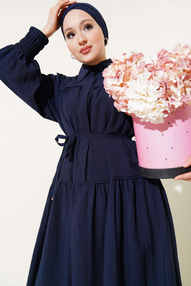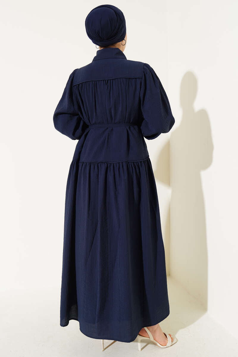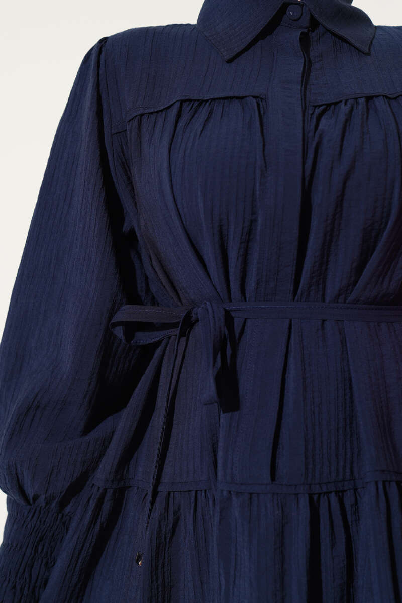 Şerit Ajur Desen Triko Elbise Bebe Mavi