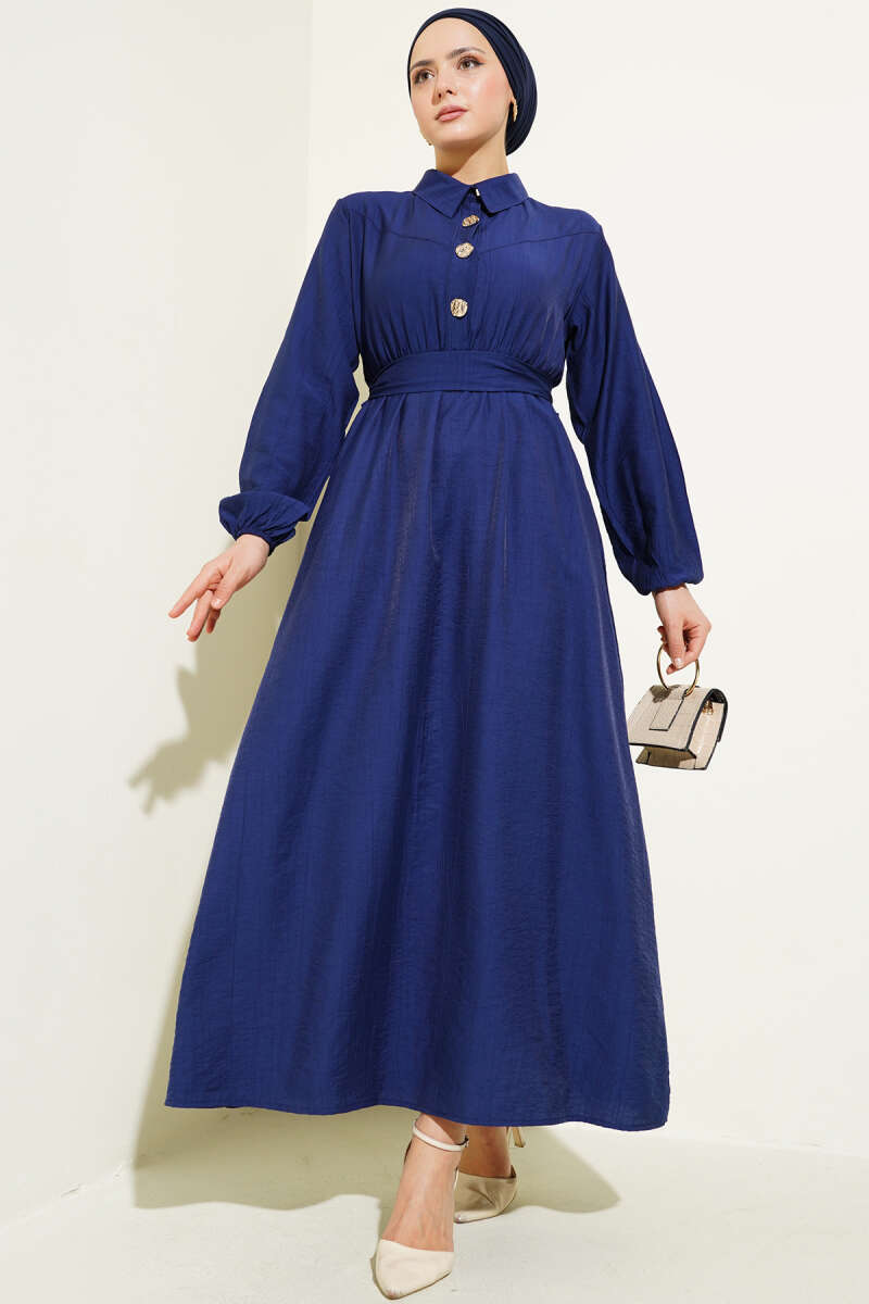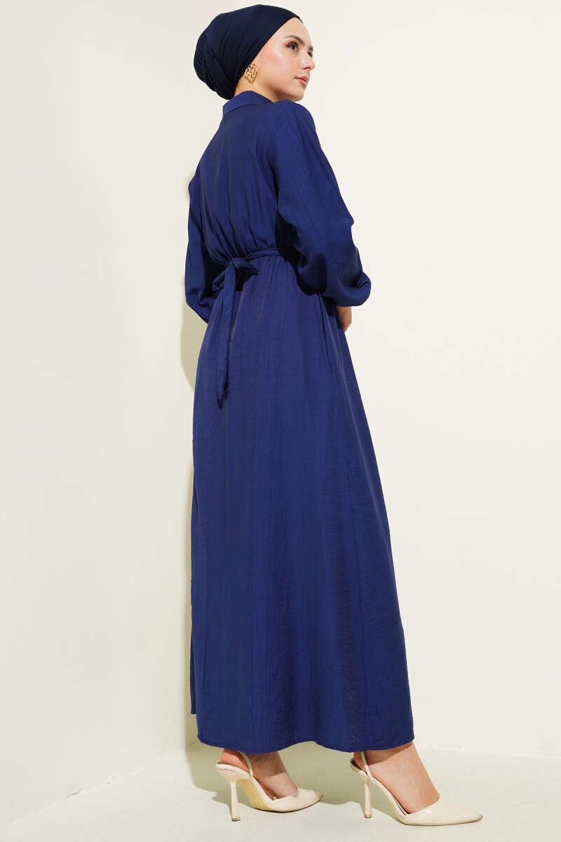 Bilek Bağlamalı Kuşaklı Abiye Elbise Lacivert