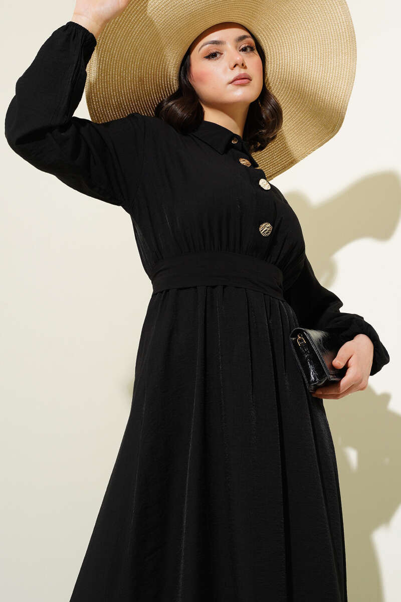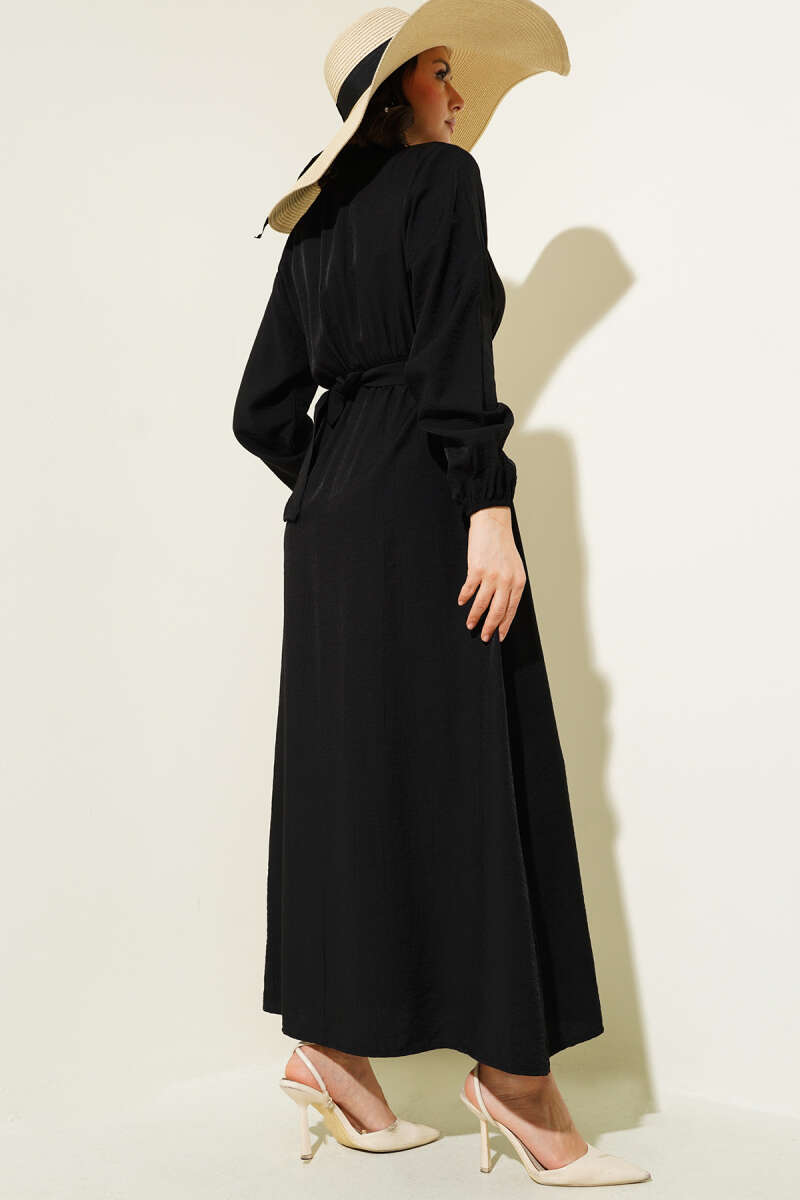 Bilek Bağlamalı Kuşaklı Abiye Elbise Siyah