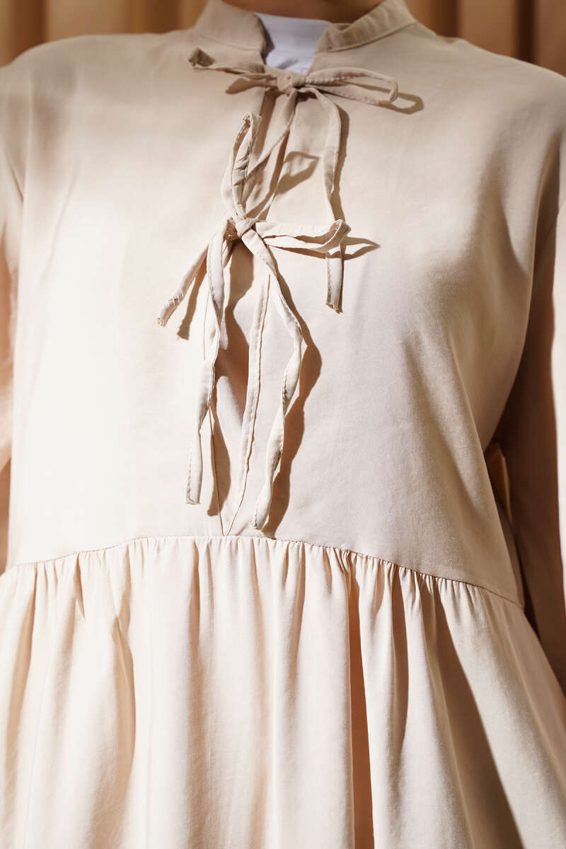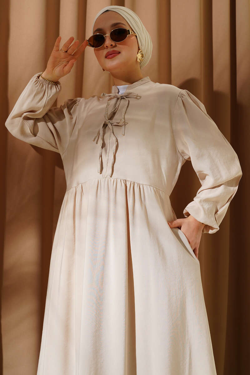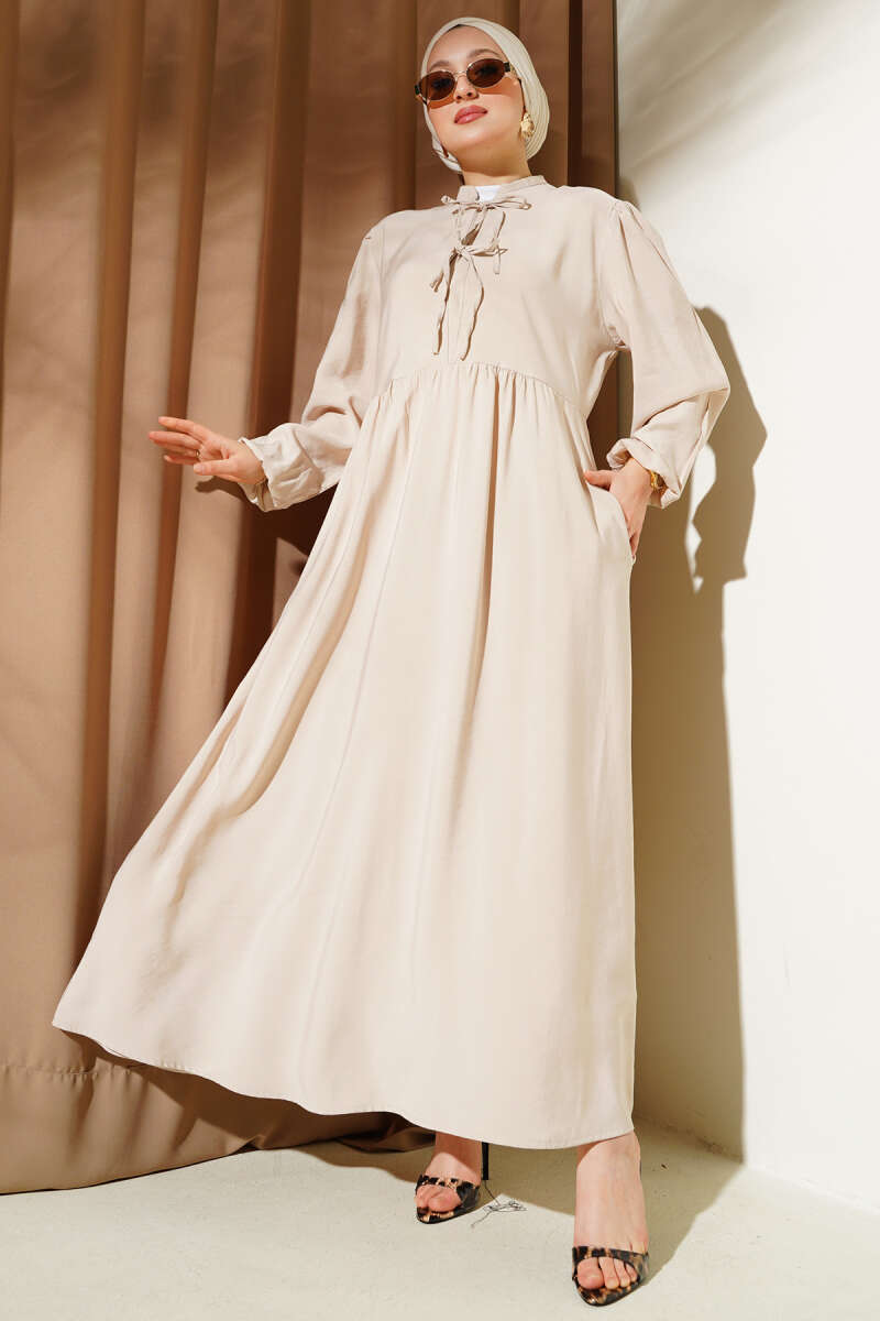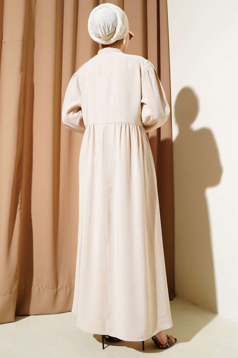 Gül Detaylı Pelerinli Abiye Elbise Pudra