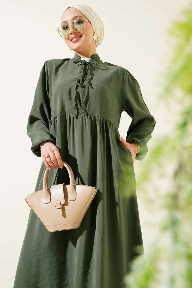 Scuba Pens Detaylı Kemerli Elbise Haki