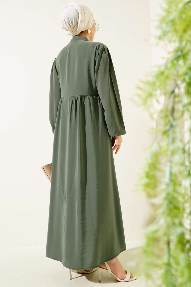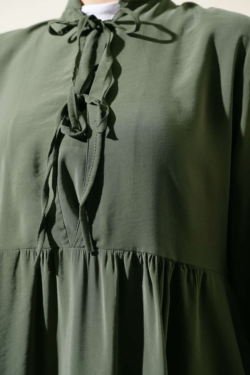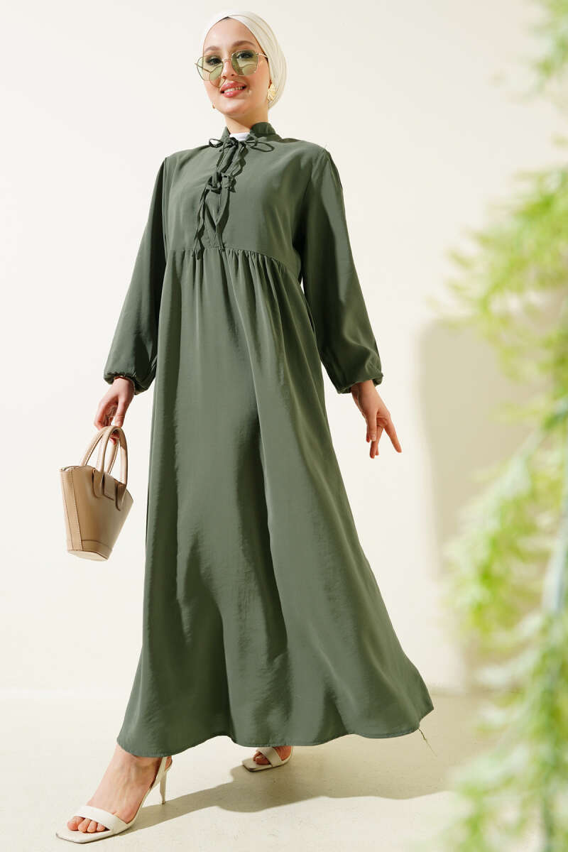 Yarım İp Bağcıklı Tensel Elbise Çağla Yeşili