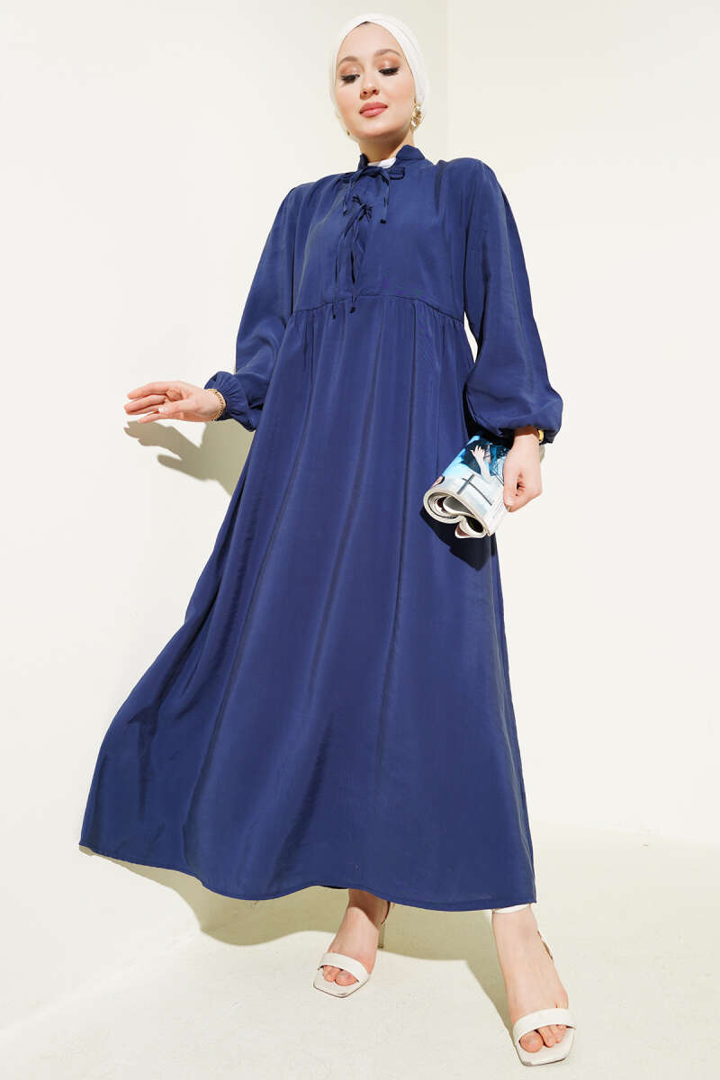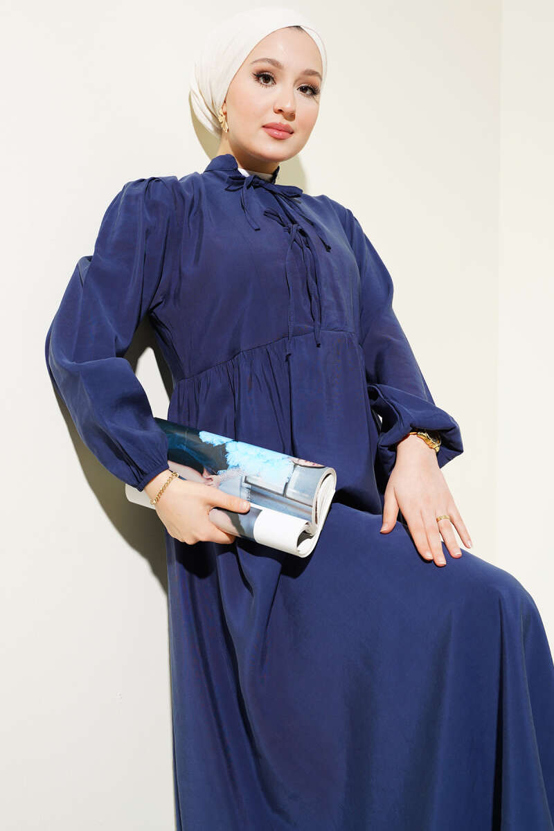 Scuba Pens Detaylı Kemerli Elbise Lacivert