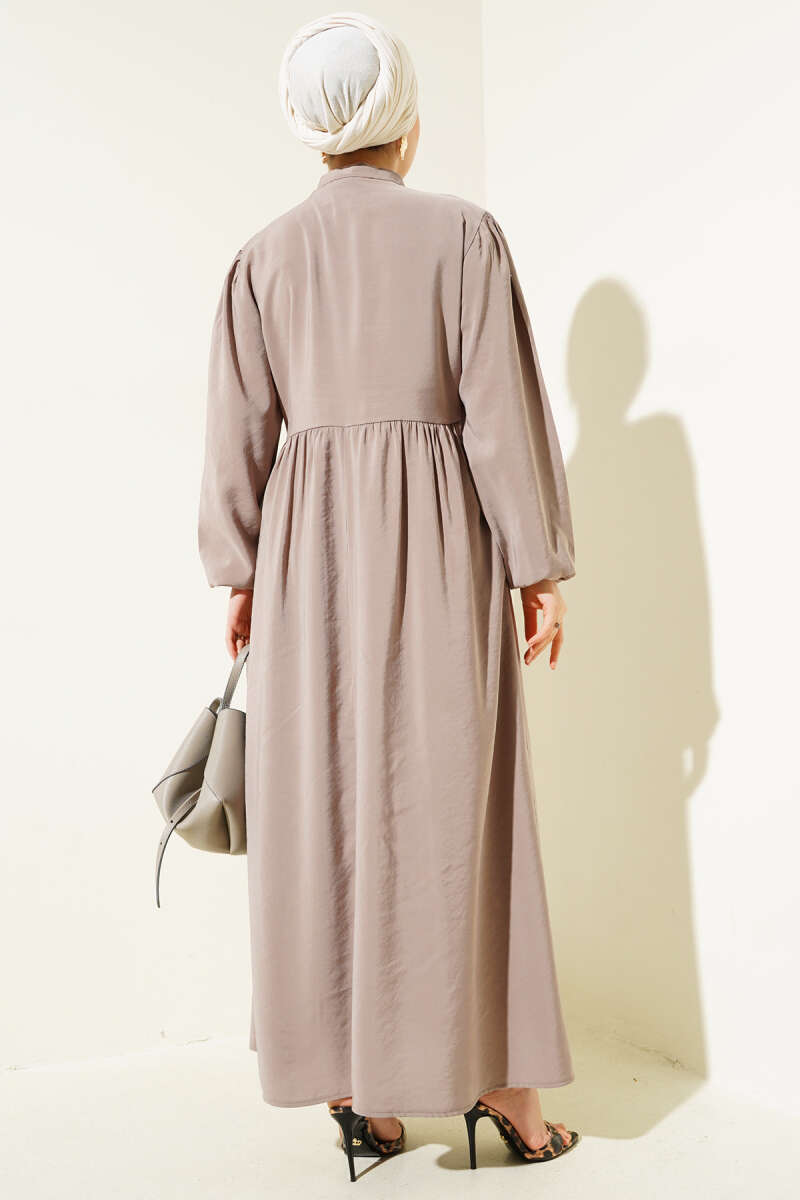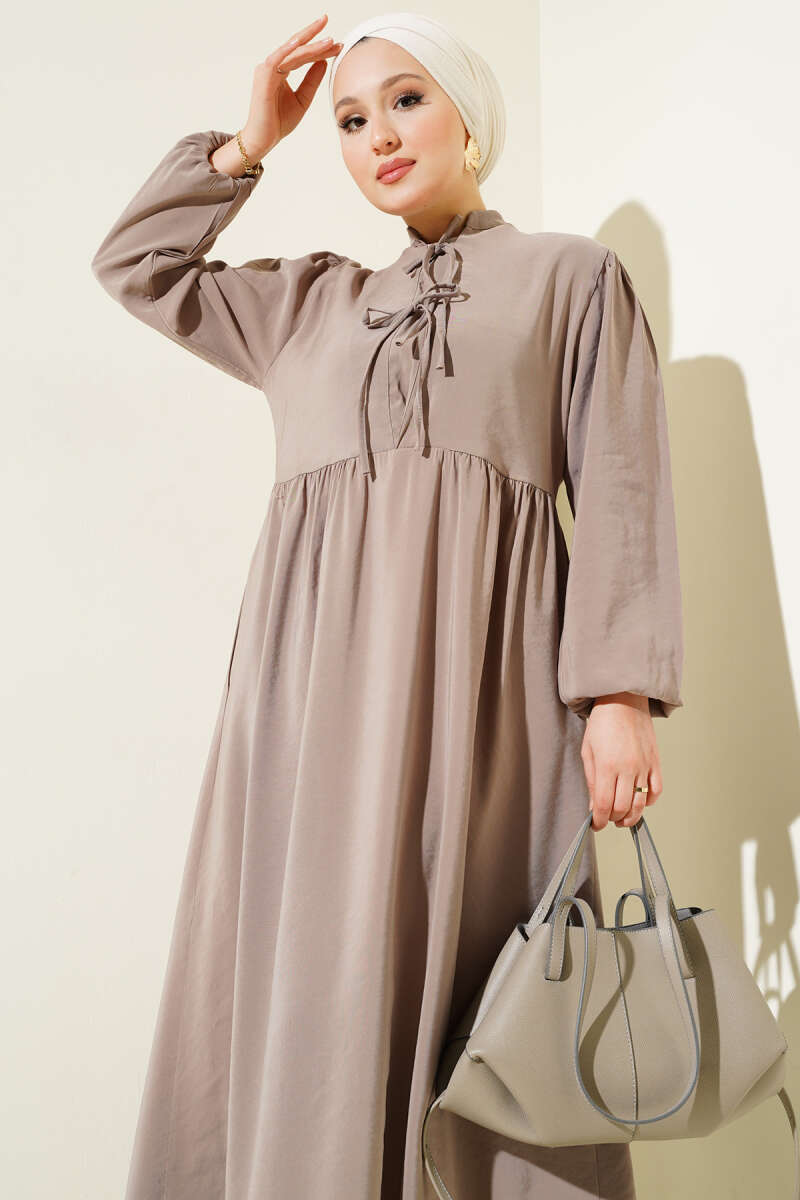 Yarım İp Bağcıklı Tensel Elbise Kestane