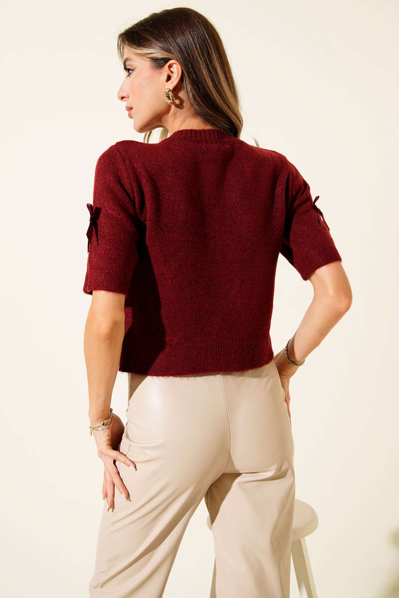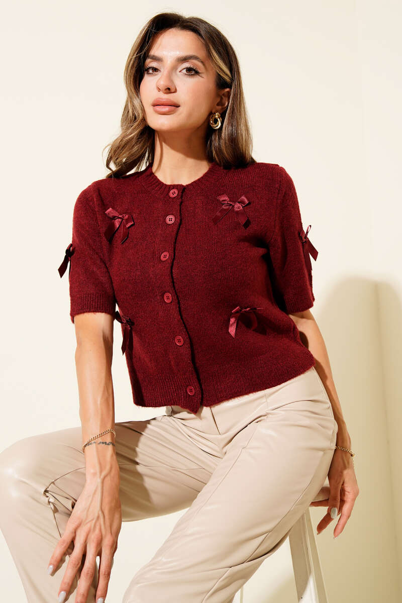 Yarım Kol Fiyonklu Triko Hırka Bordo