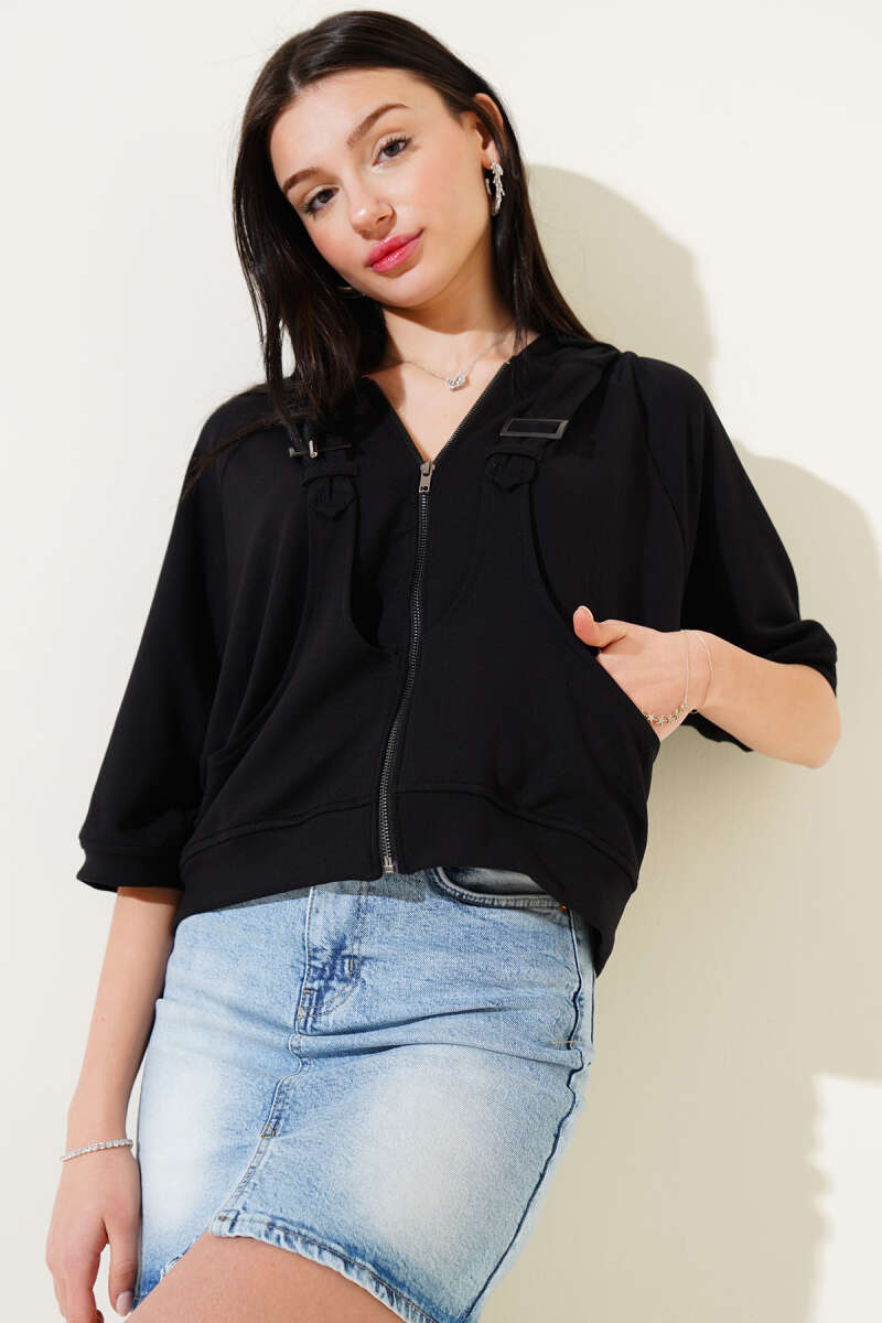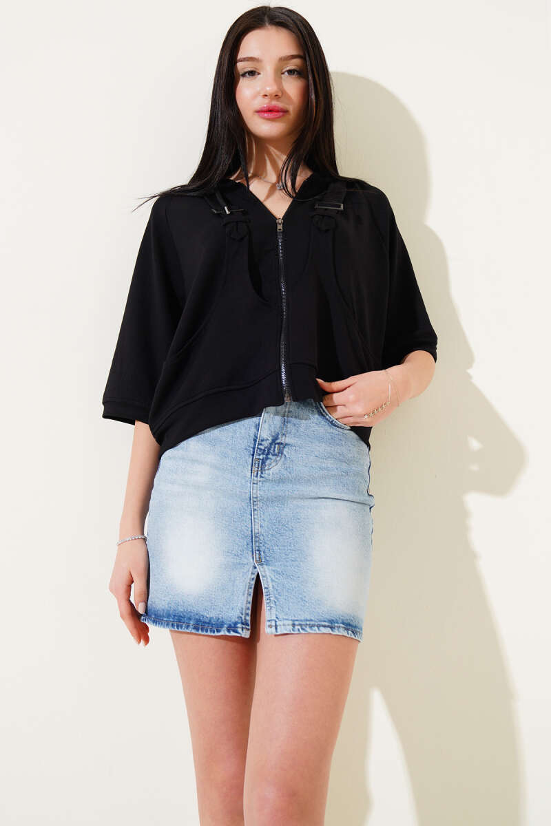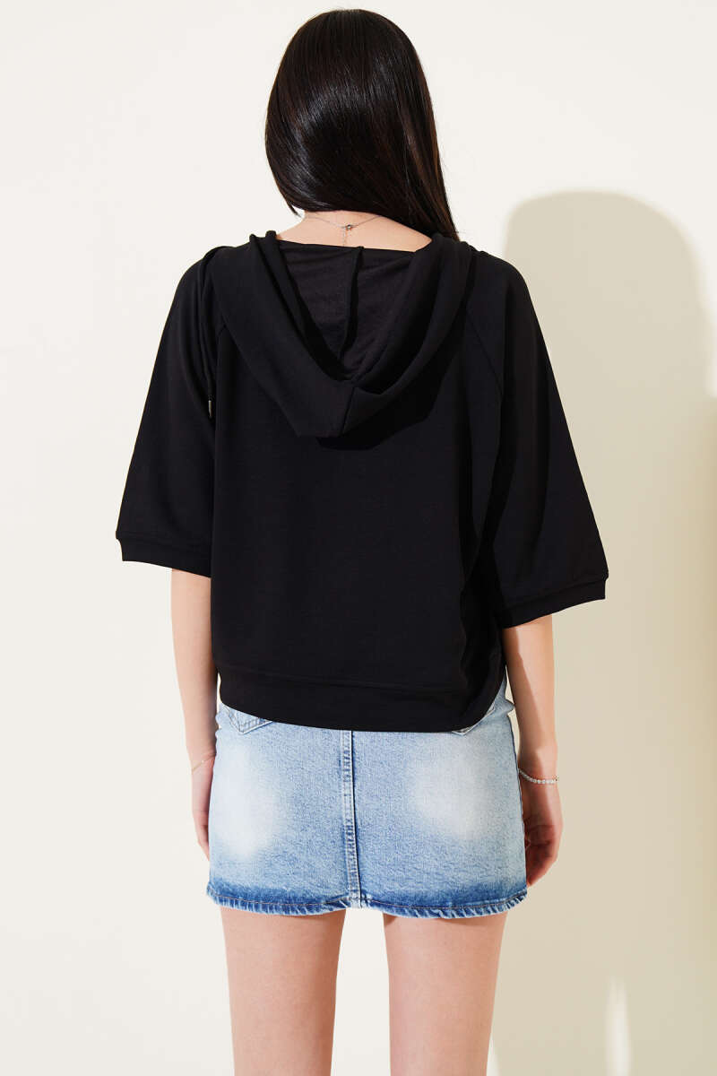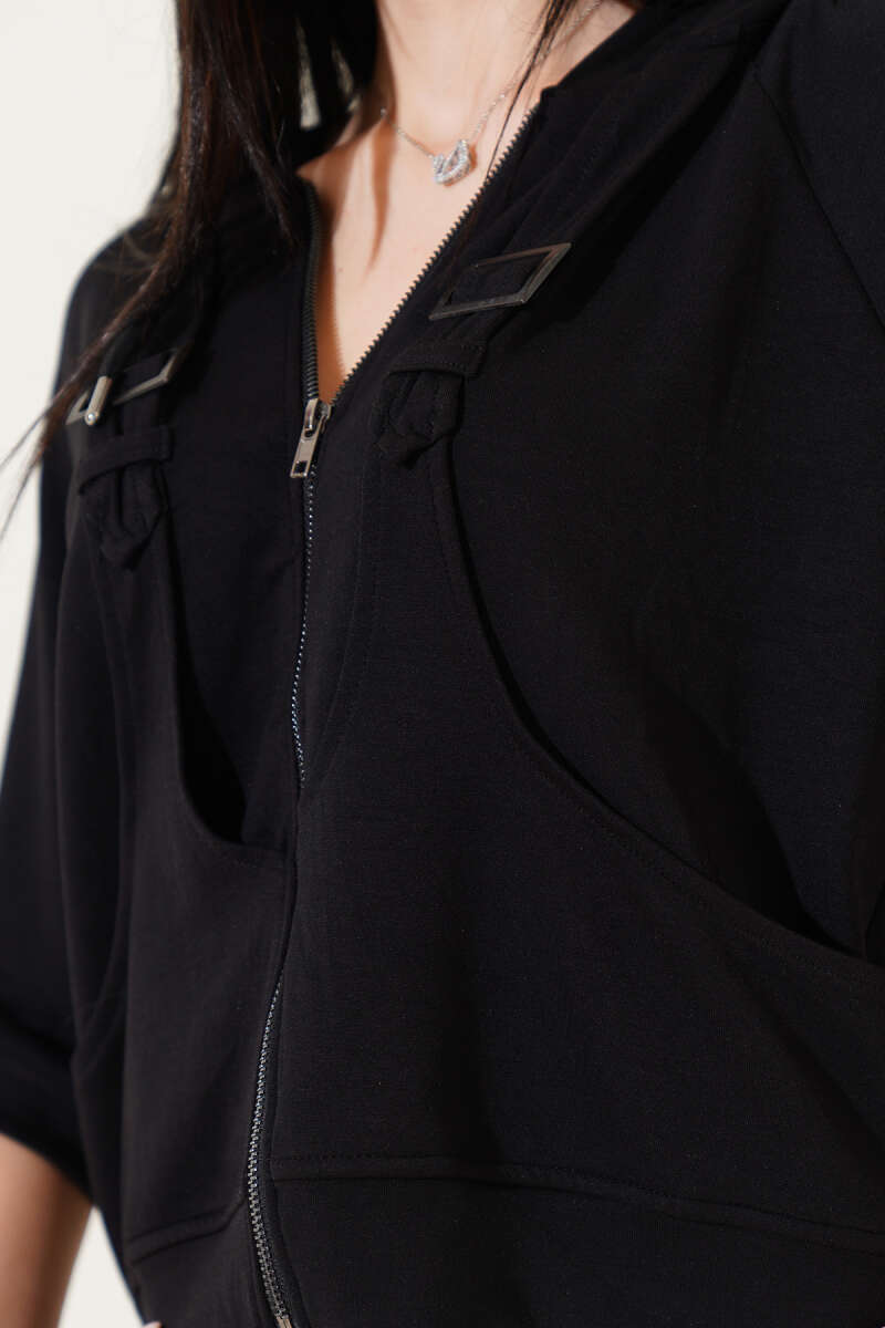 Çoban Dikiş Detaylı Triko Tunik Siyah