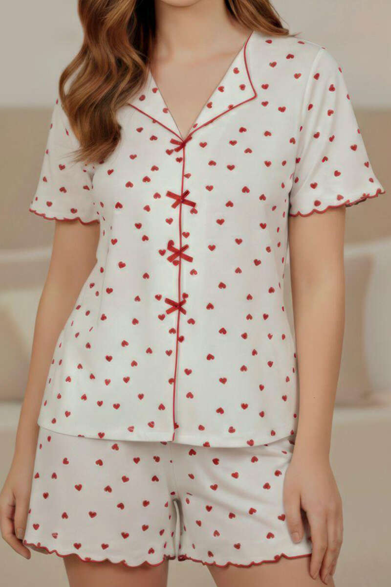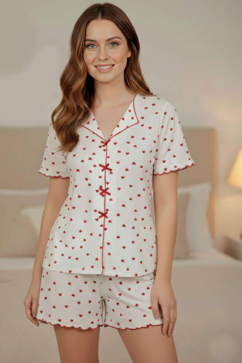 Yarım Kol Şortlu Pijama Takımı Kırmızı