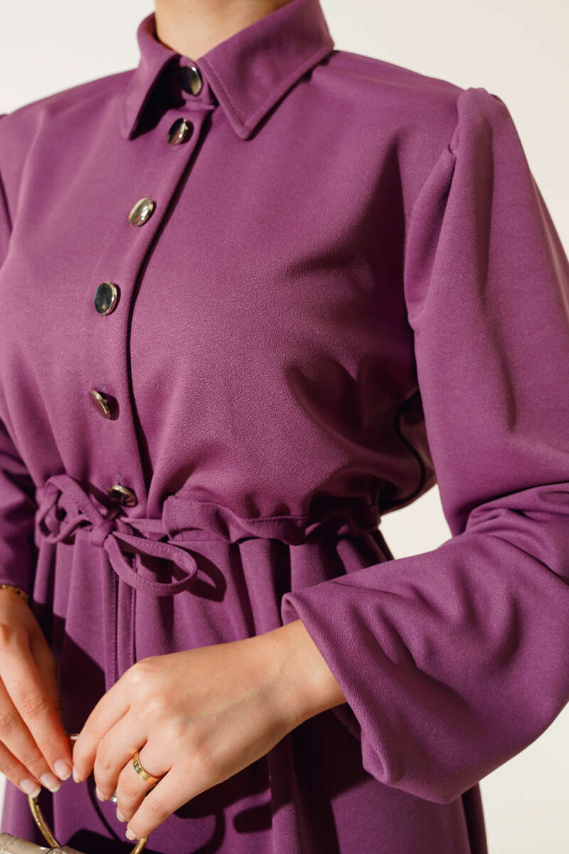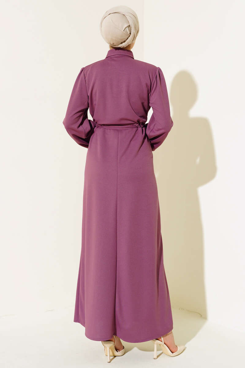 Duble Kol İp Bağcıklı Elbise Füme