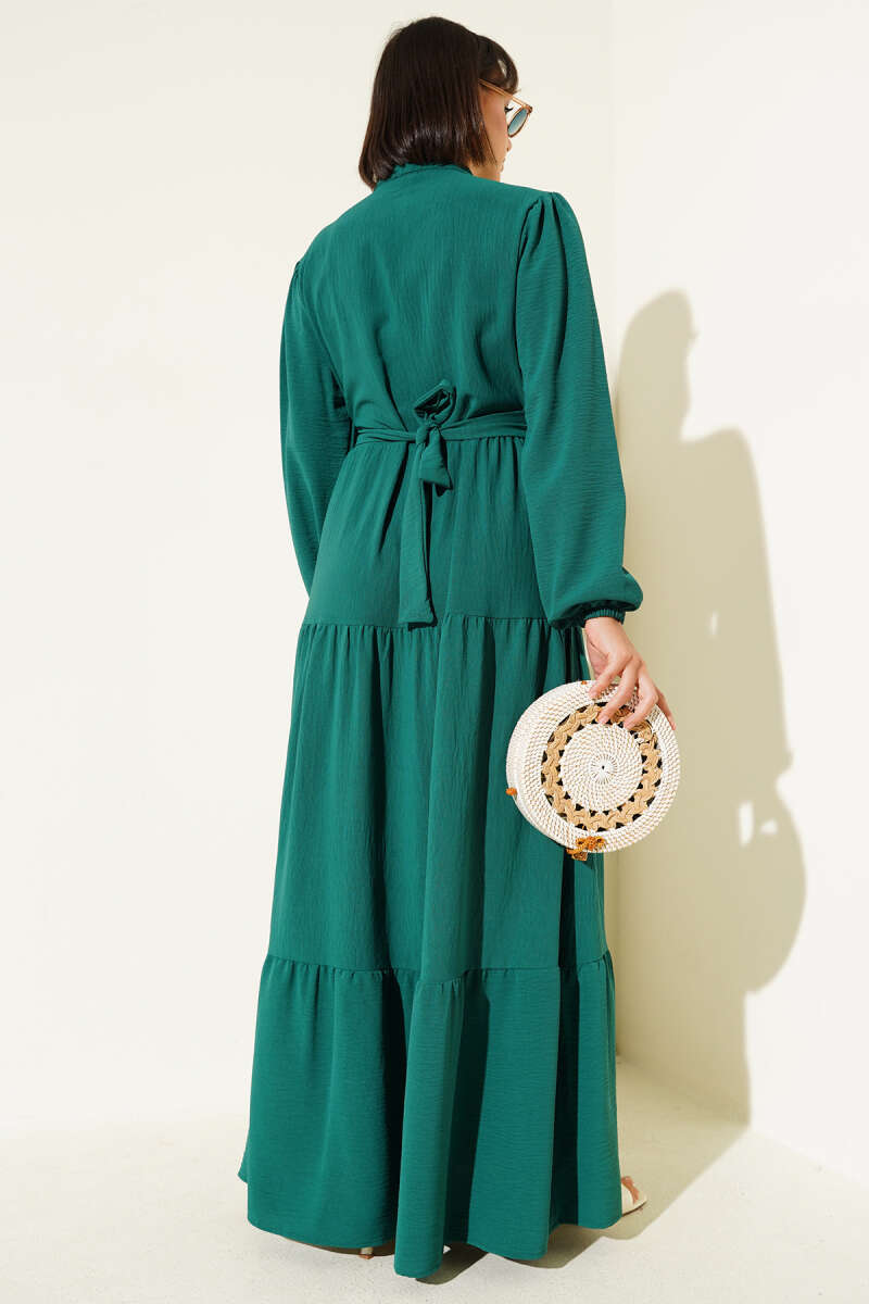 Bilek Bağlamalı Kuşaklı Abiye Elbise Siyah