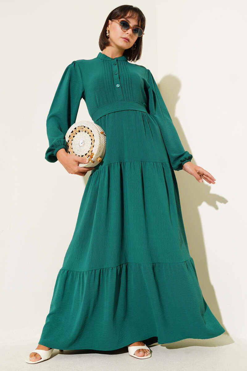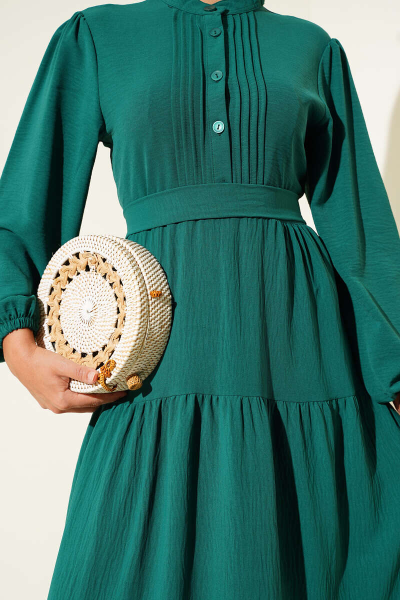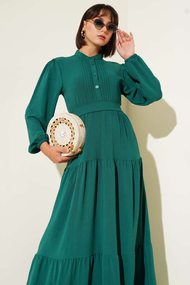 Pelerin Detaylı Pileli Triko Elbise Kahve