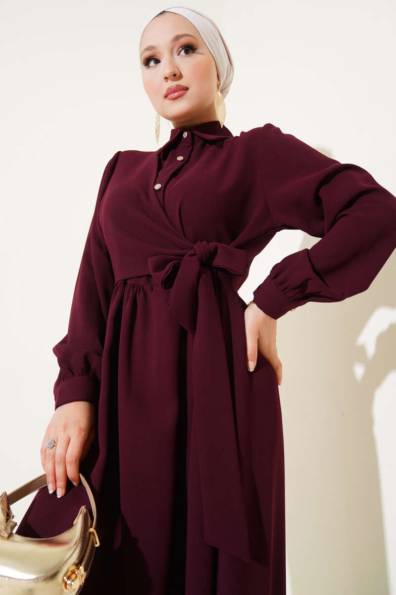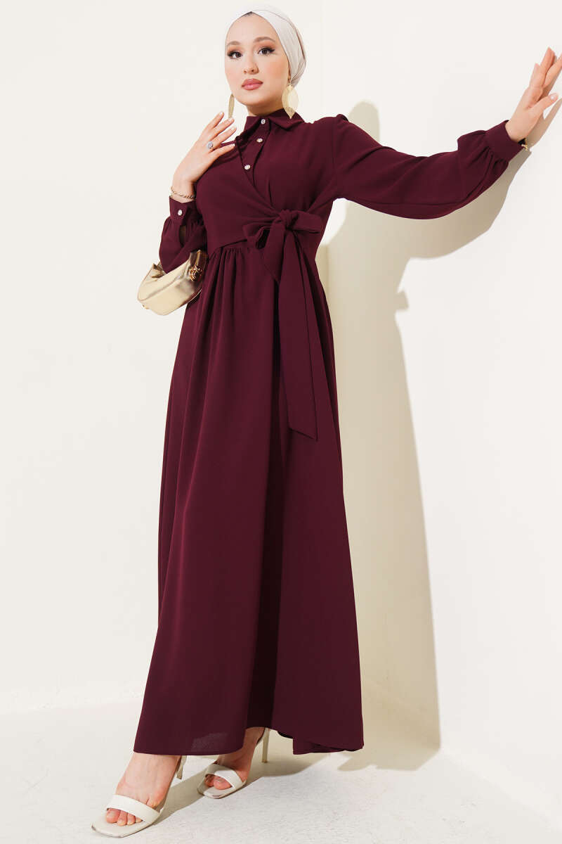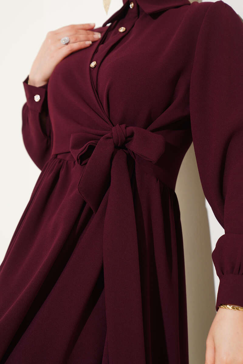 Bilek Bağlamalı Kuşaklı Abiye Elbise Bordo