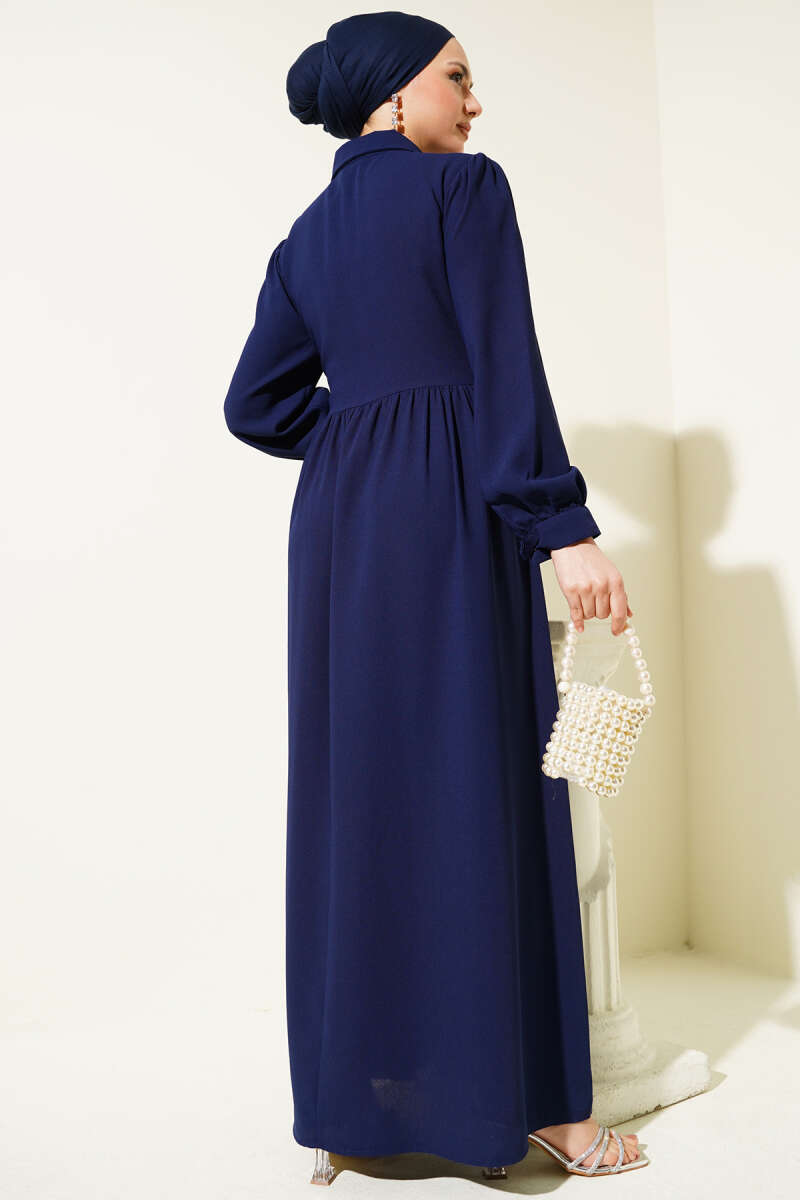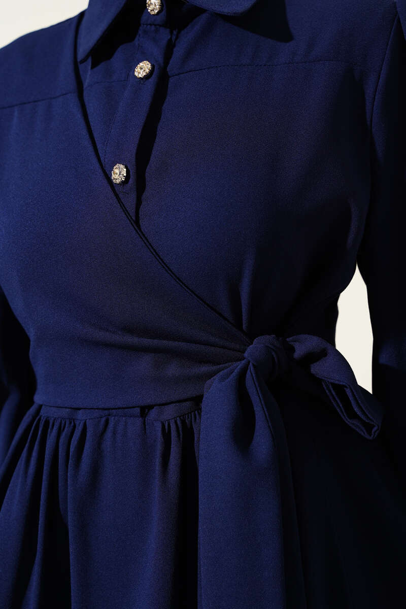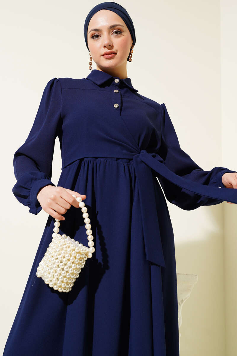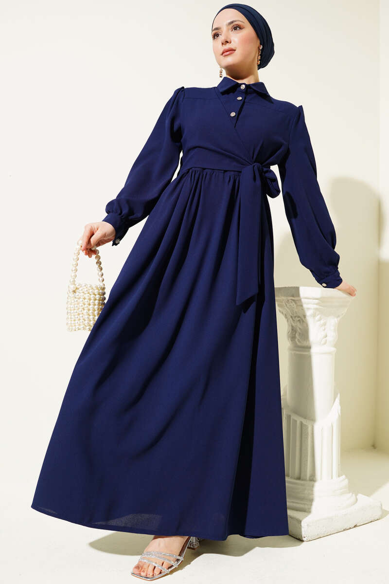 Bilek Bağlamalı Kuşaklı Abiye Elbise Lacivert