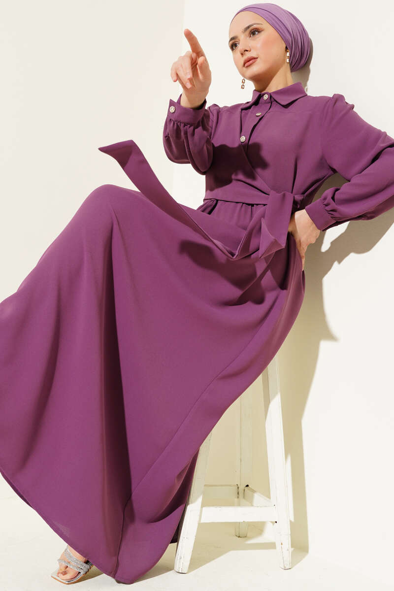 Bilek Bağlamalı Kuşaklı Abiye Elbise Bordo