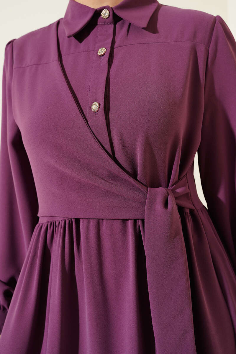 Yan Taş Detaylı Büzgülü Abiye Elbise Bordo