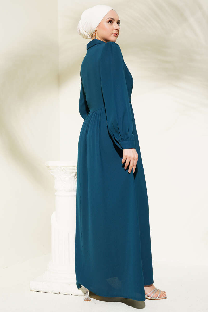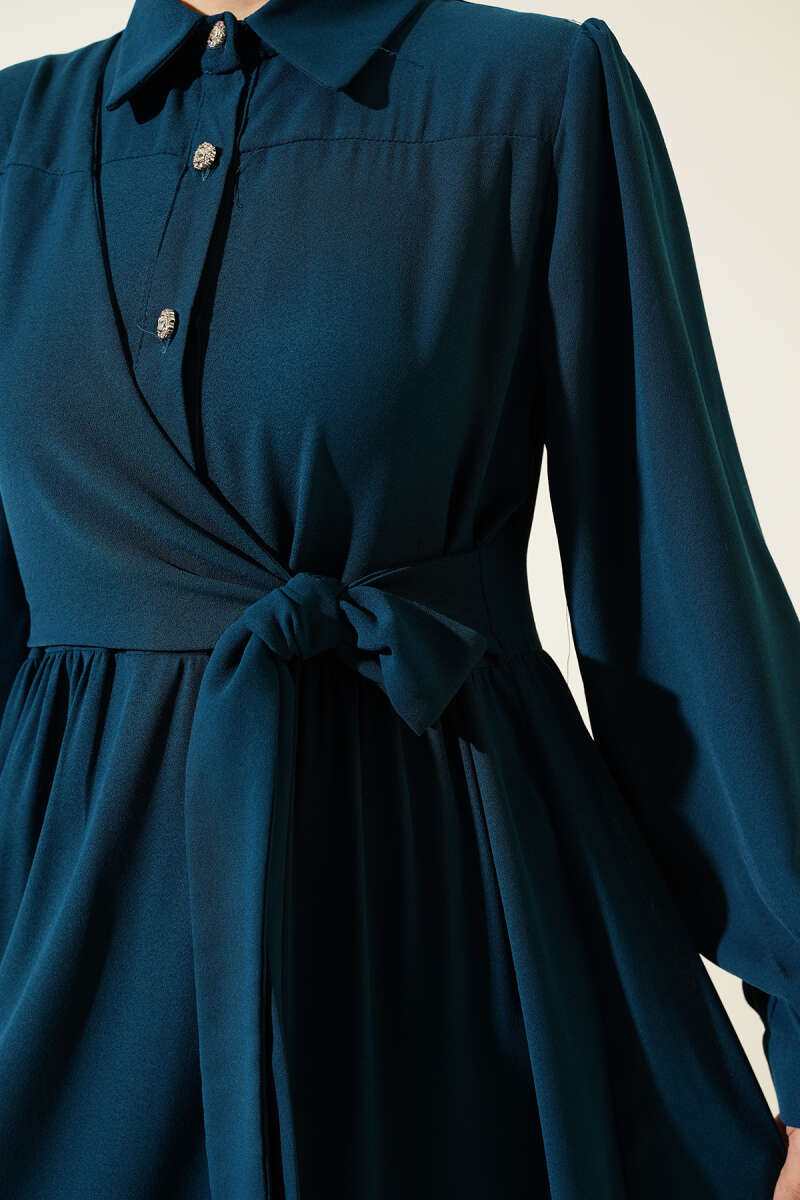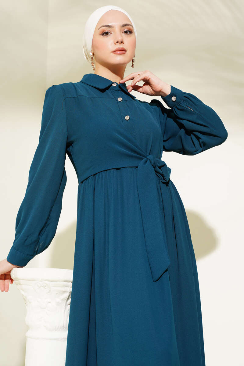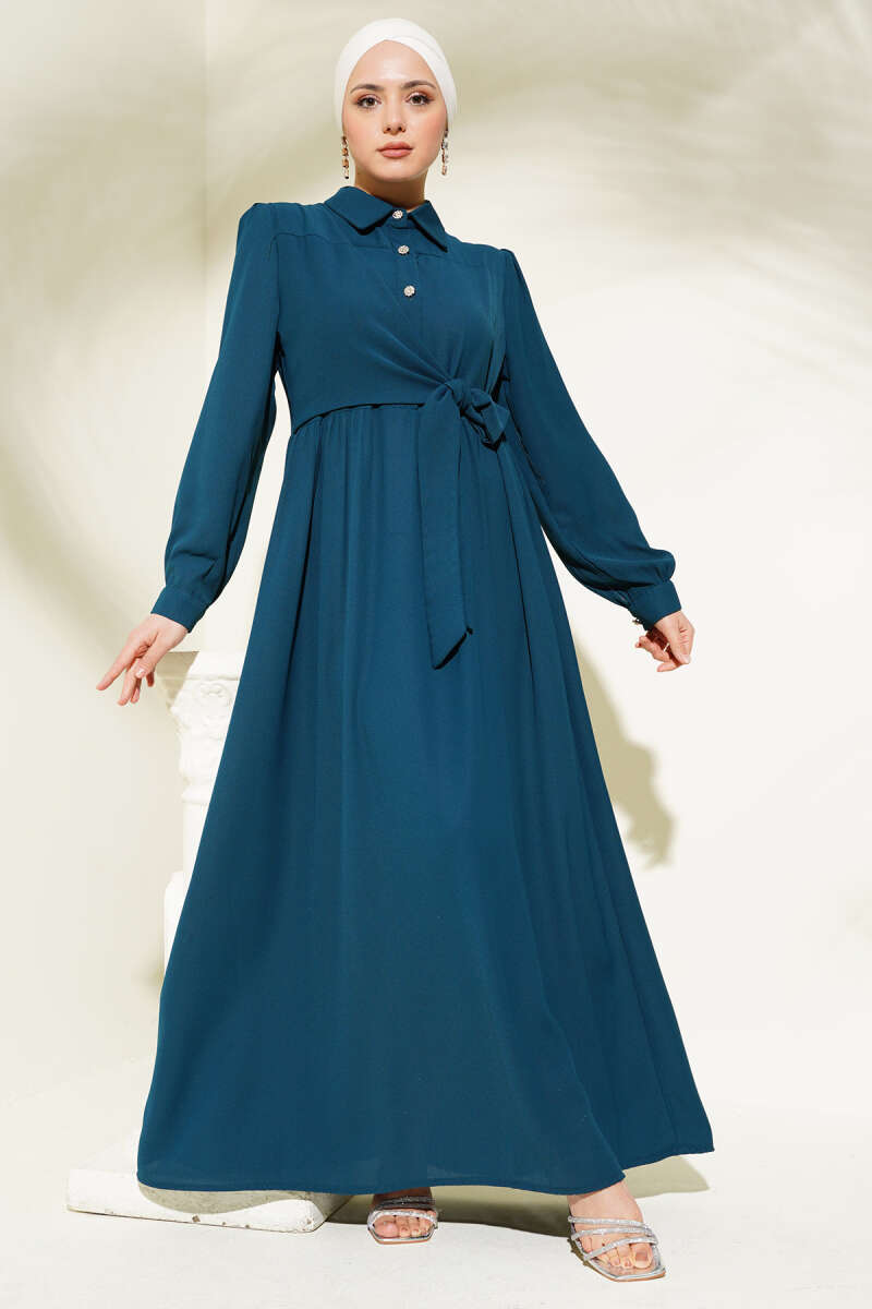 Bel Taşlı Pelerinli Abiye Elbise Lacivert