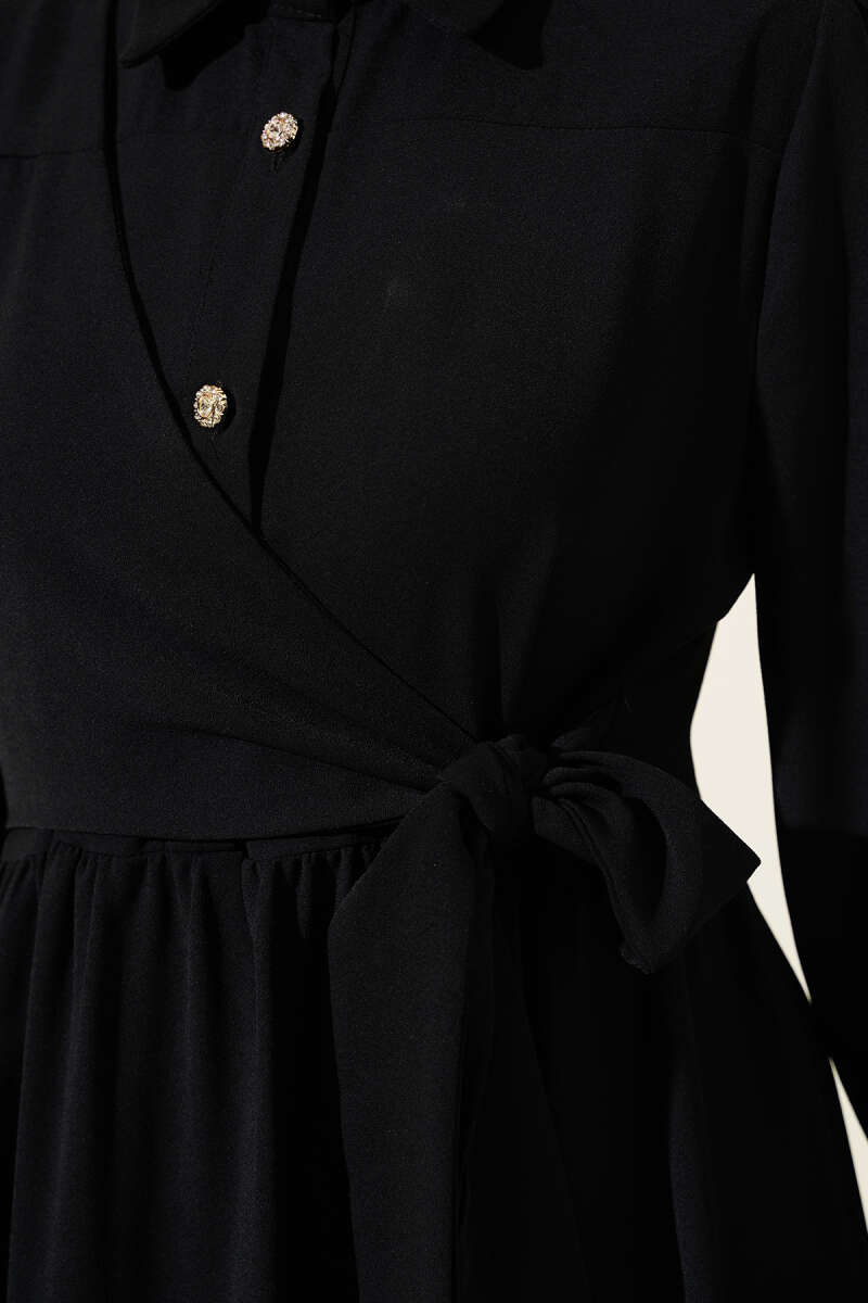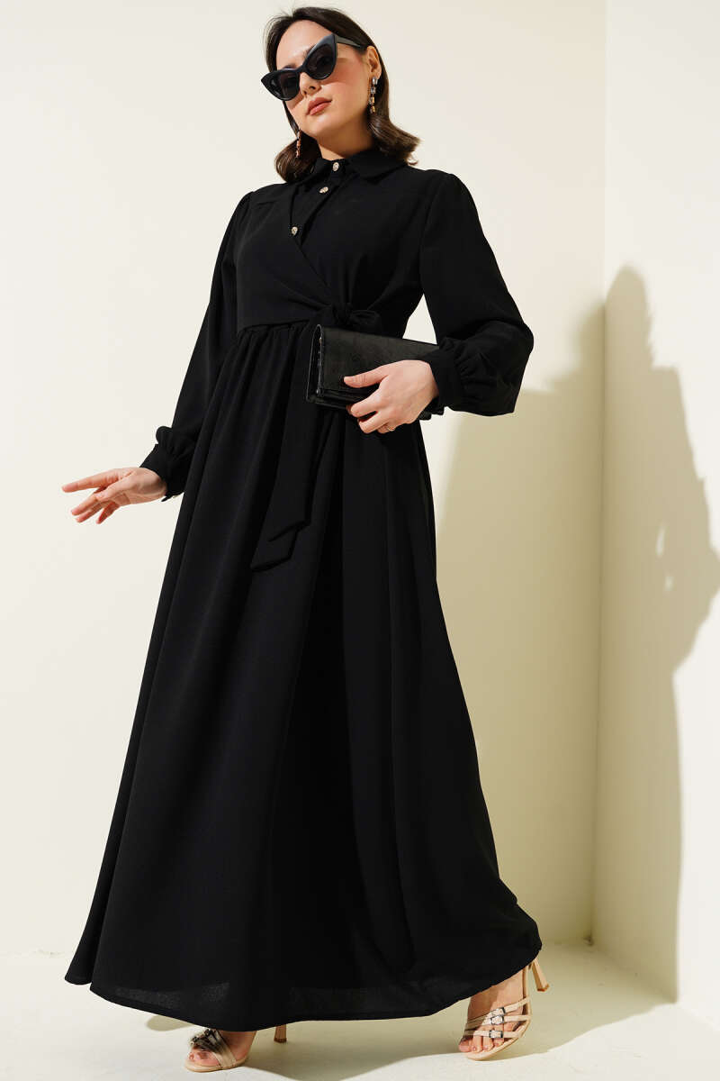 Bilek Bağlamalı Kuşaklı Abiye Elbise Siyah