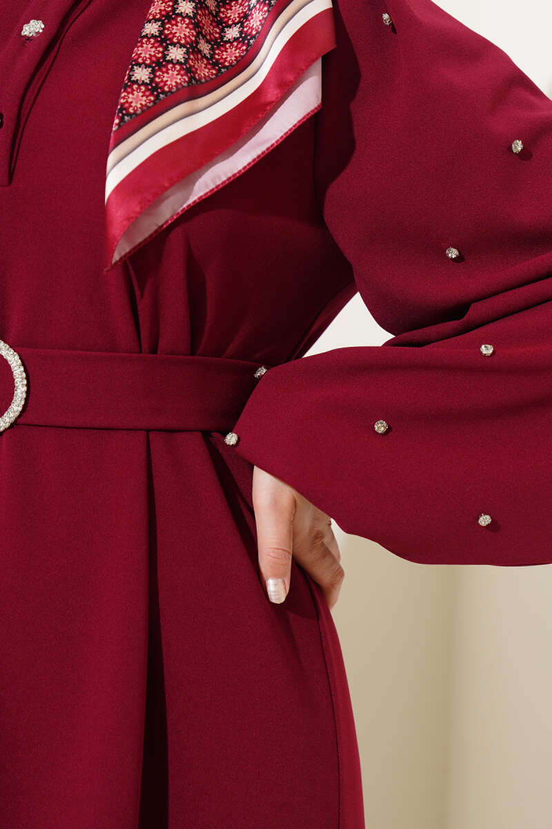 Gömlek Yaka Düğmeli Triko Elbise Bordo