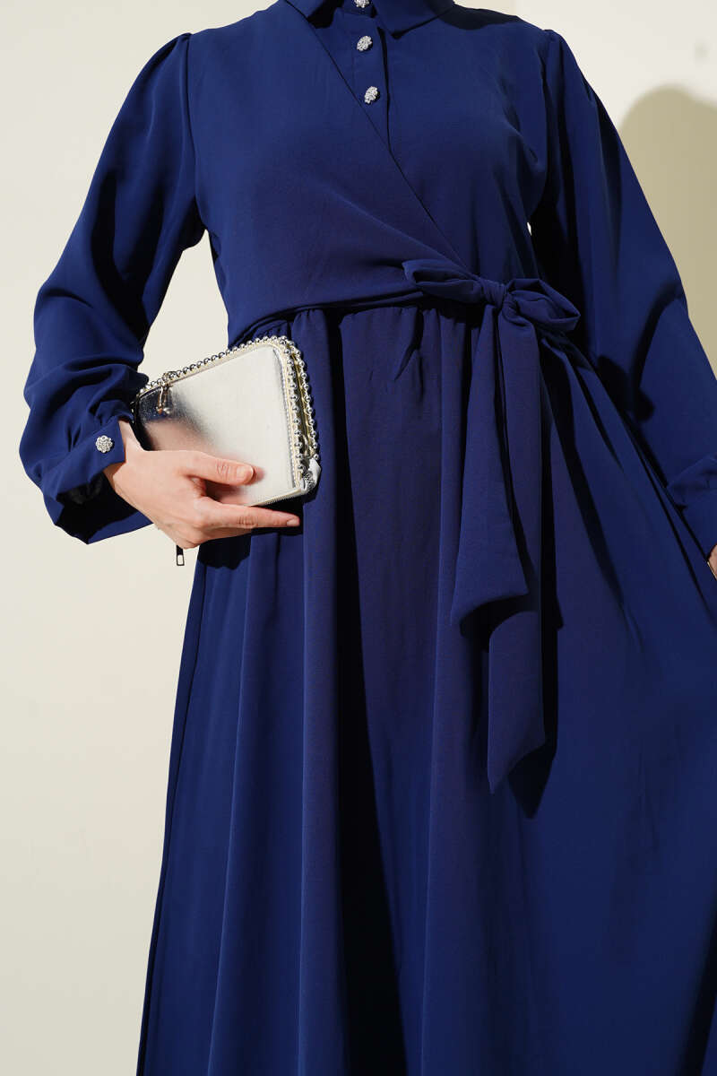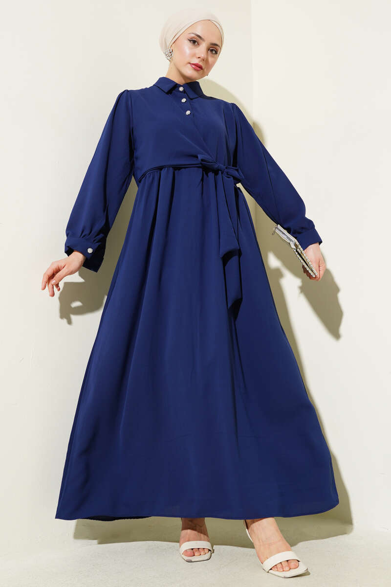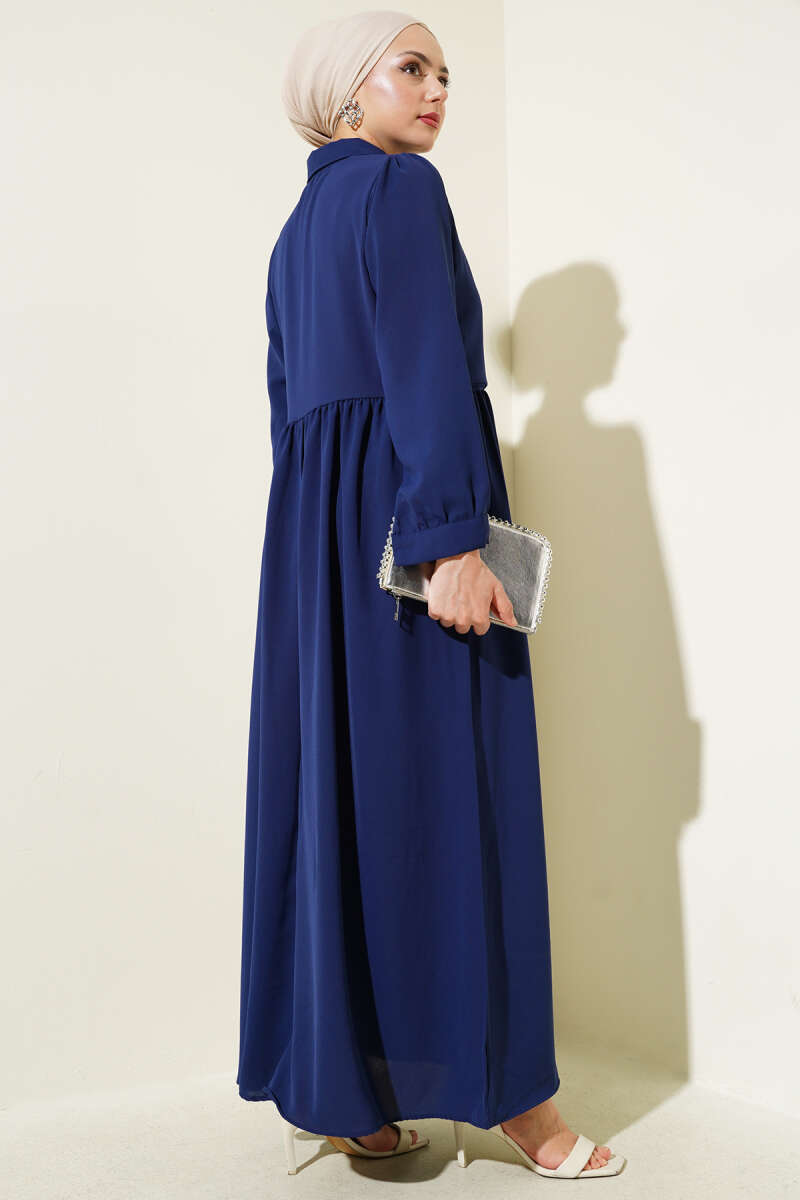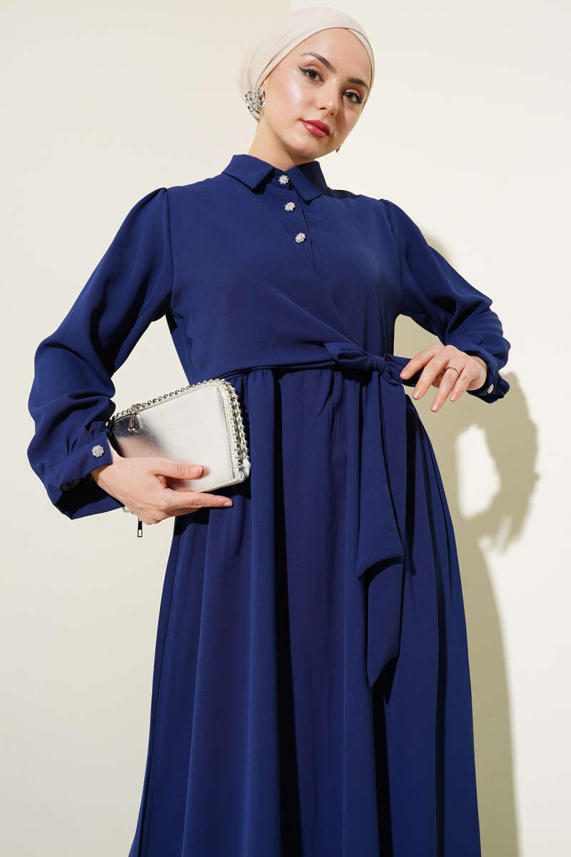 Gömlek Yaka Düğmeli Triko Elbise Lacivert
