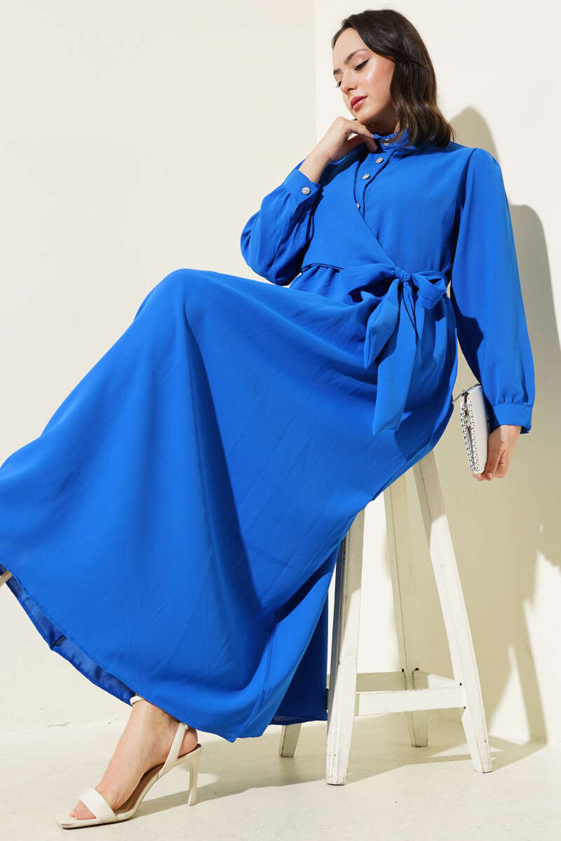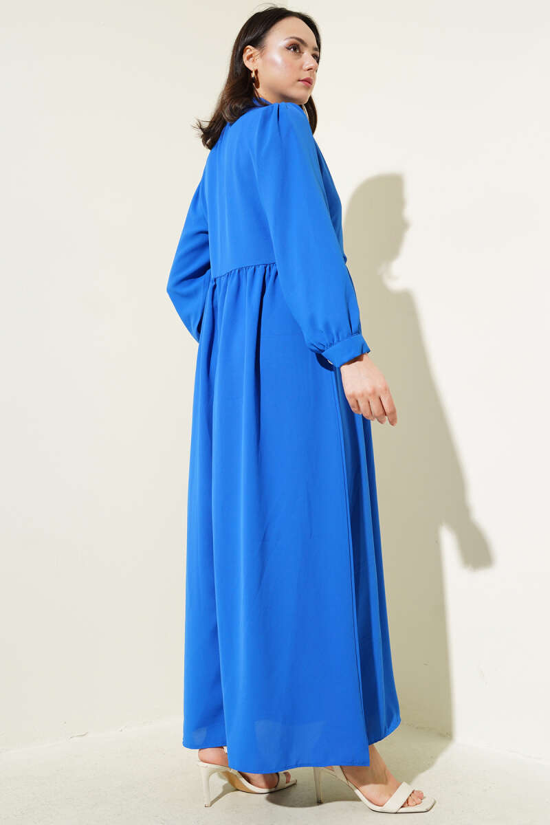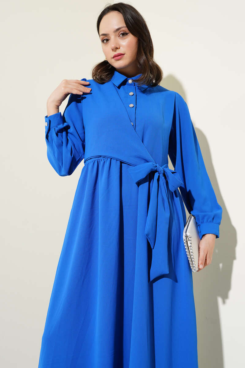 Pelerin Detaylı Düğmeli Triko Elbise Lacivert