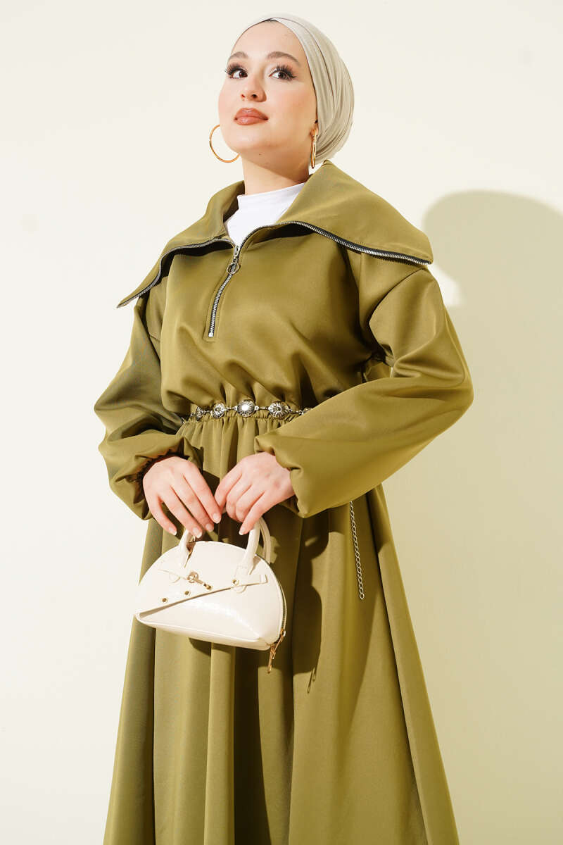 Yarım Yaka Fermuarlı Scuba Elbise Kahve