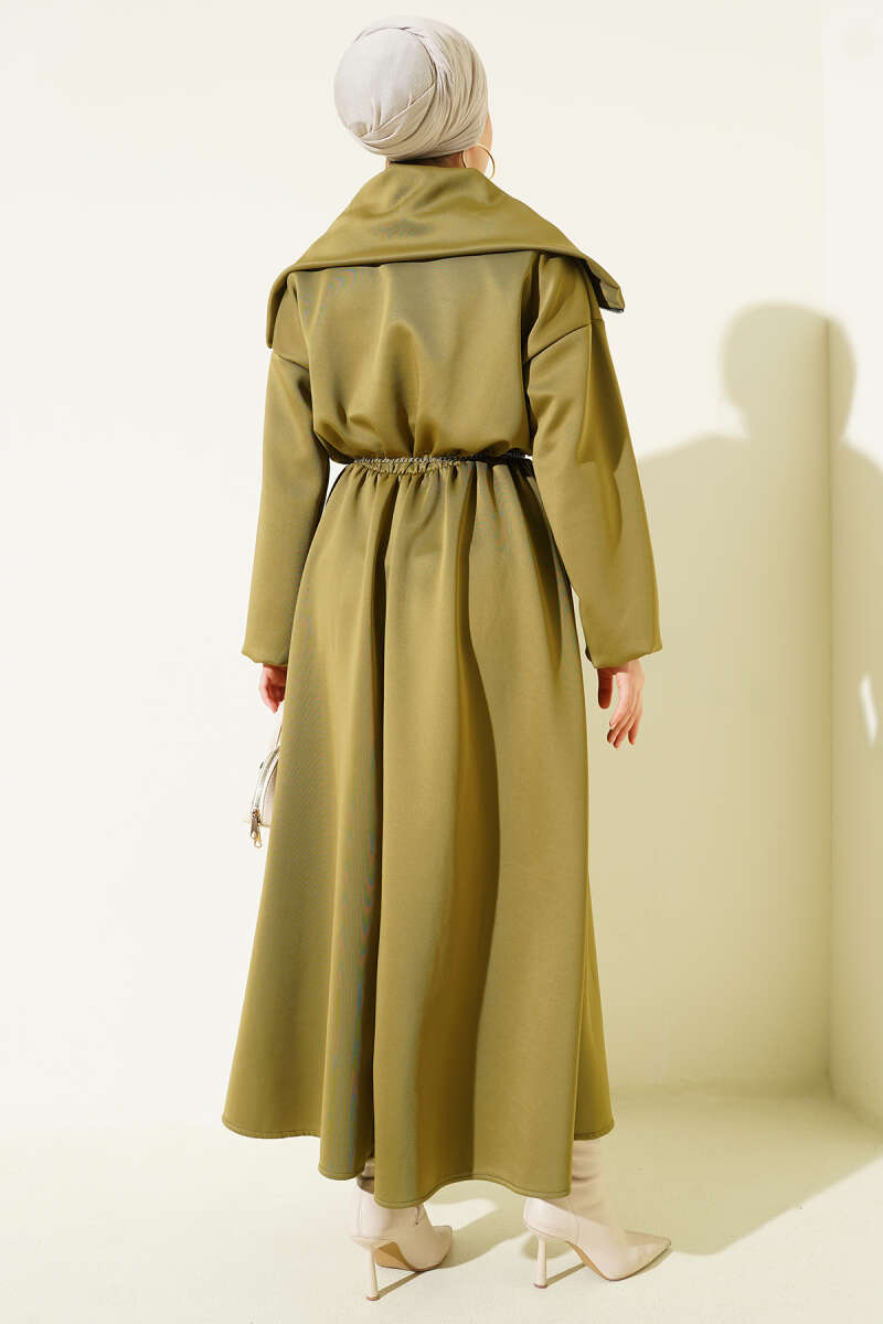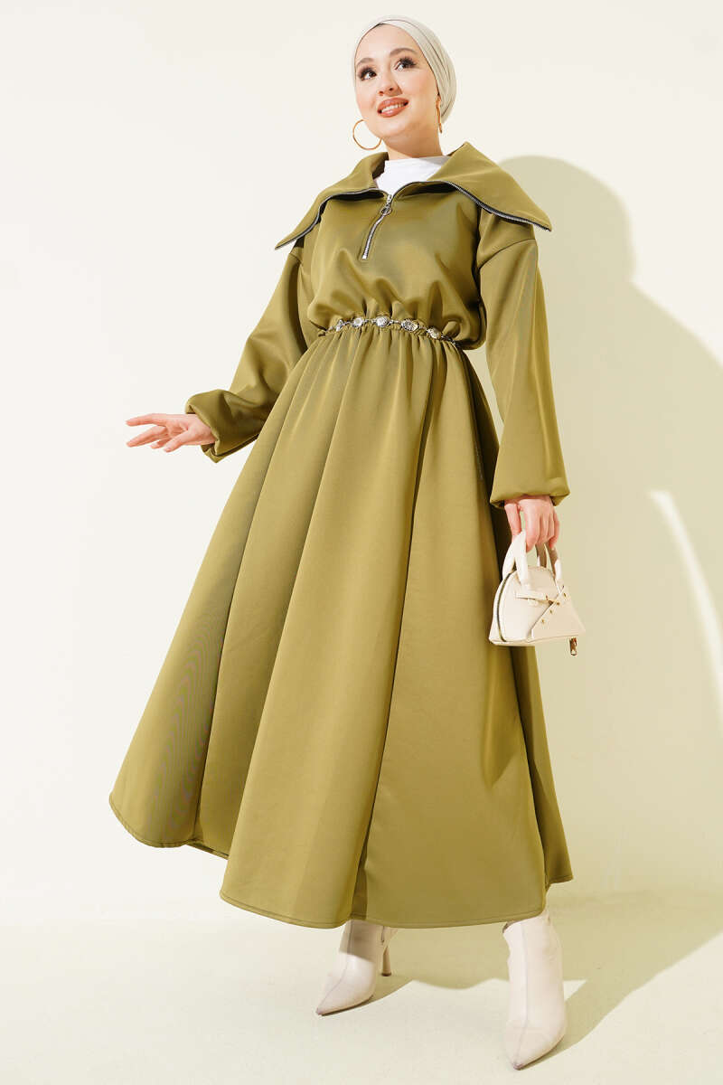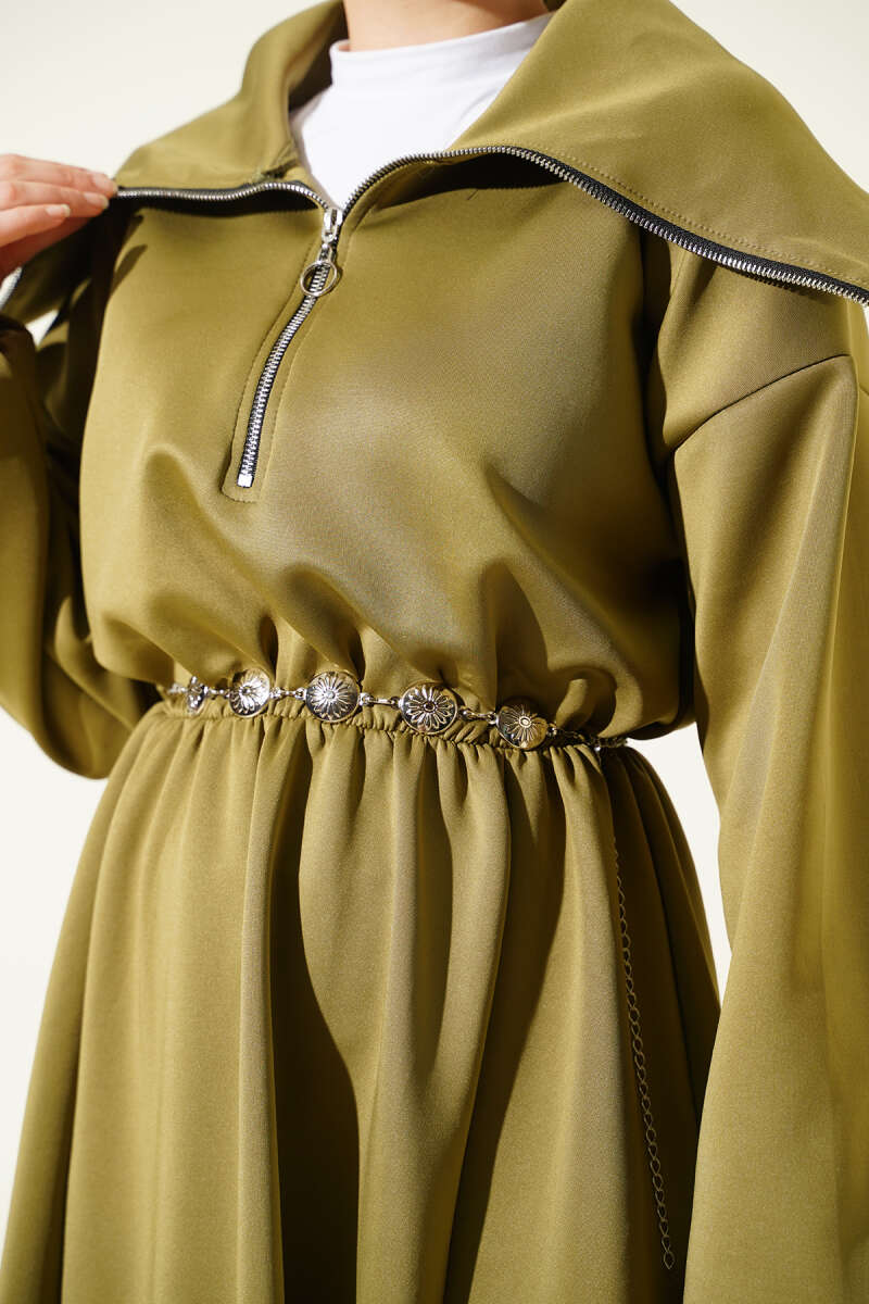 Yarım Yaka Fermuarlı Scuba Elbise Haki