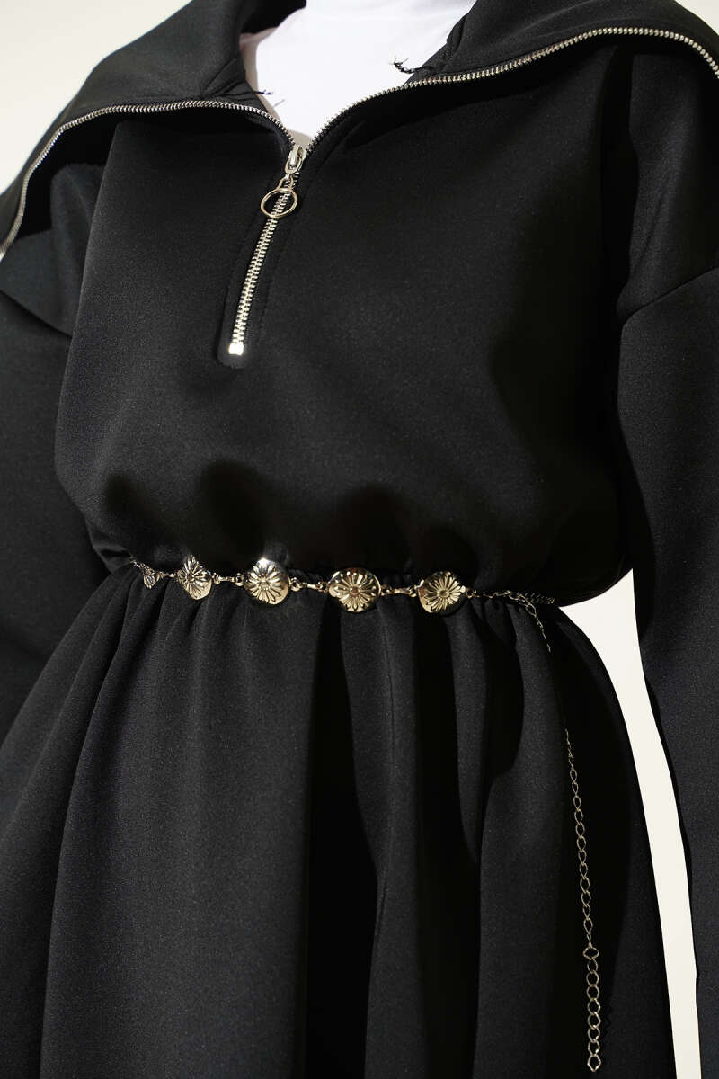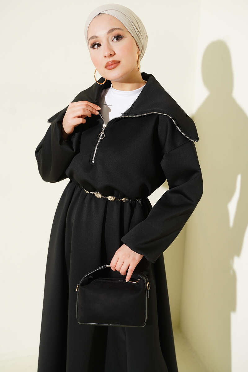 Yarım Yaka Fermuarlı Scuba Elbise Siyah