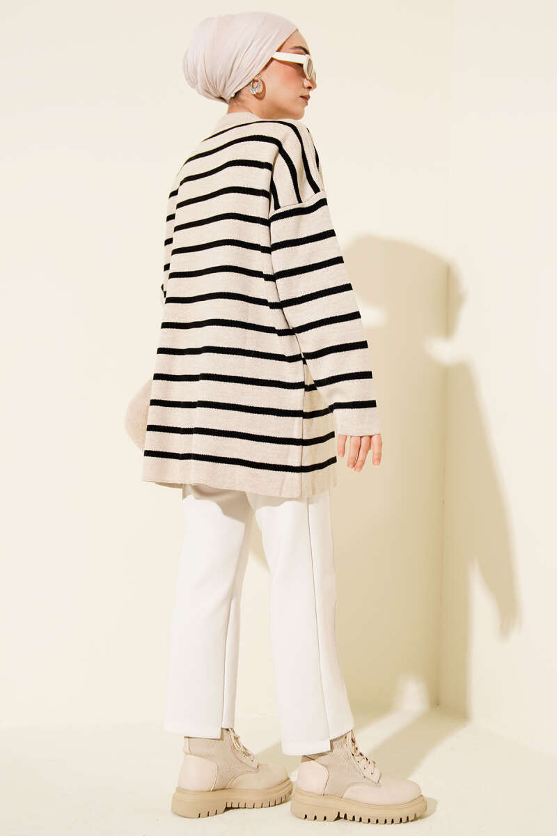 Yatay Çizgi Detaylı Basic Triko Tunik Ekru