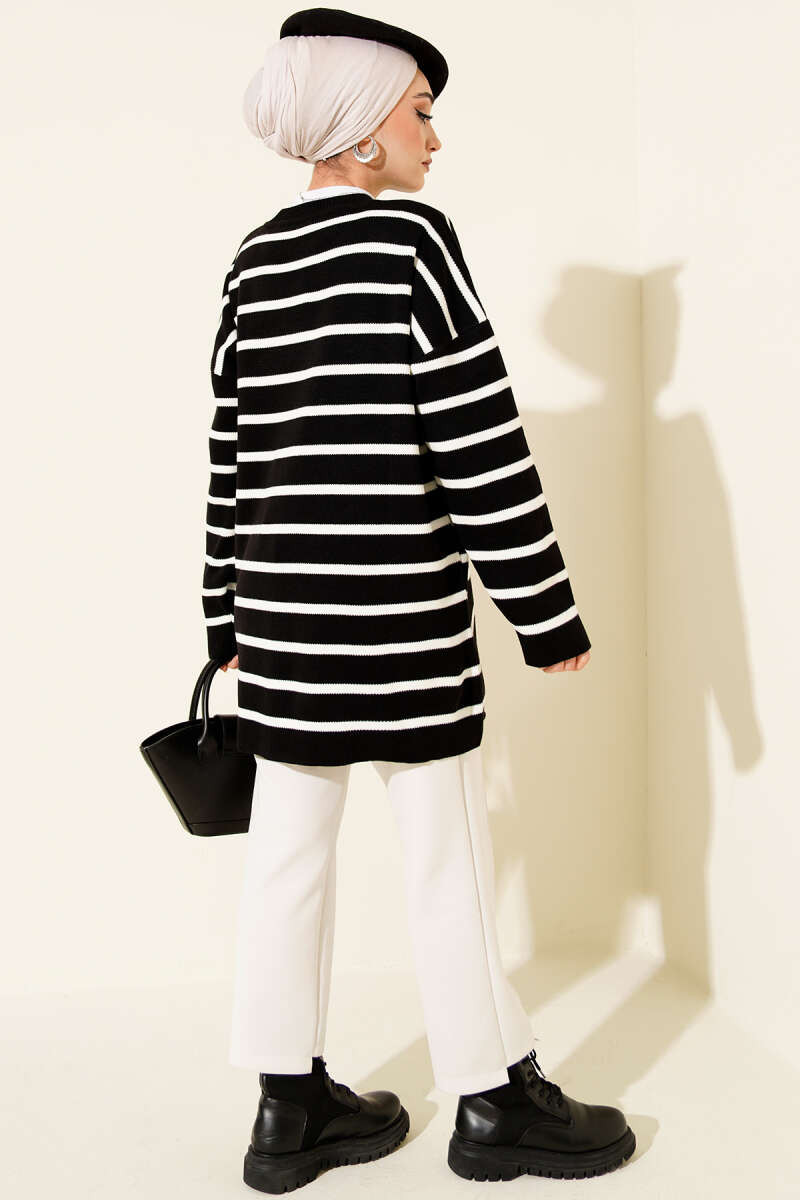 Yatay Çizgi Detaylı Basic Triko Tunik Siyah