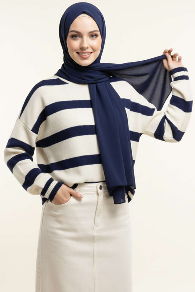 Gömlek Yaka Düğmeli Triko Tunik Lacivert