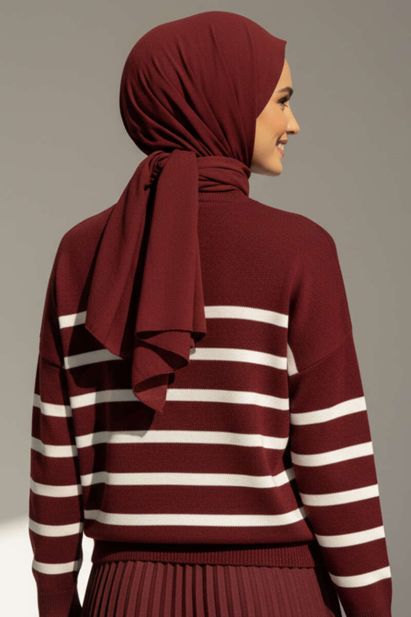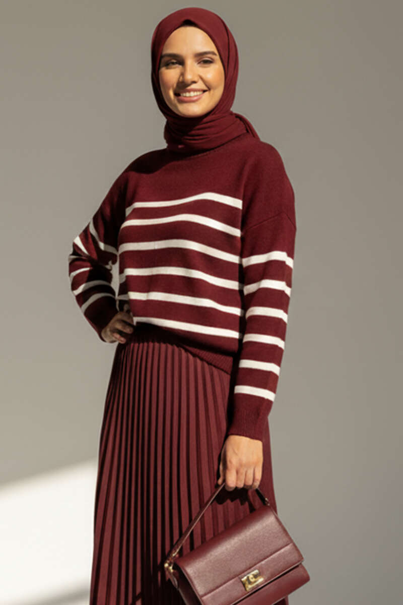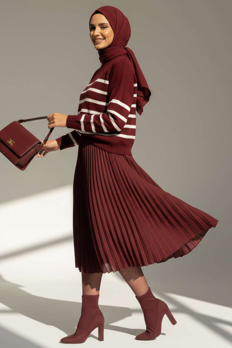 Çiçek Desenli Etekli Triko İkili Takım Bordo