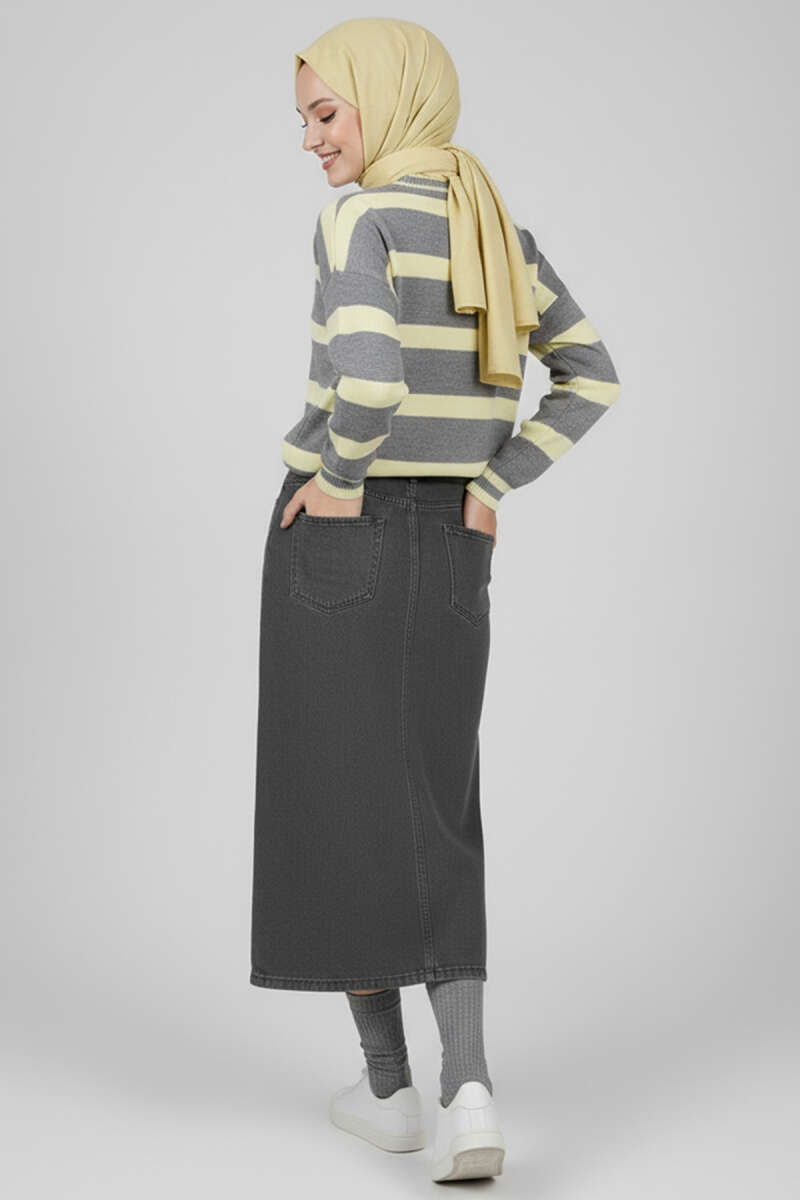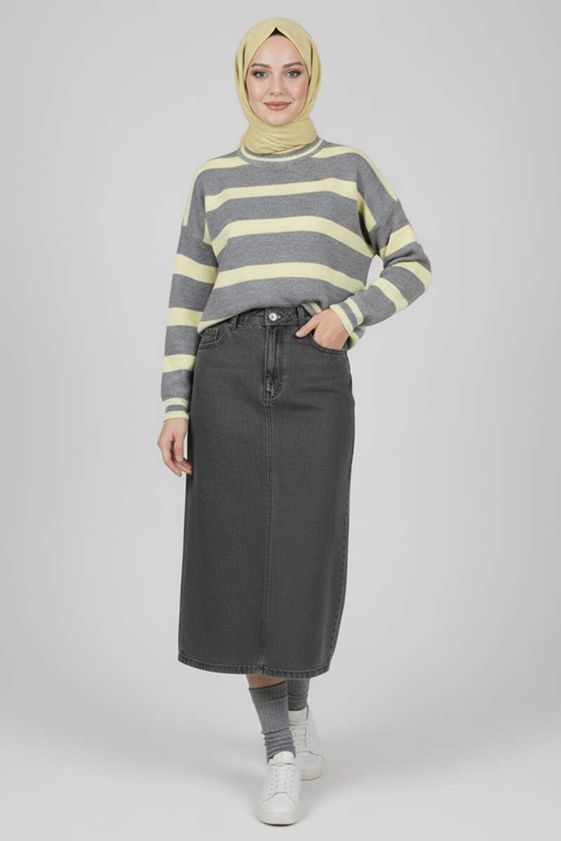 Dik Yaka Taşlı Triko Kazak Yeşil