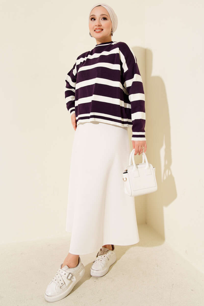 Dalgalı Taşlı Etekli İkili Takım Kahve