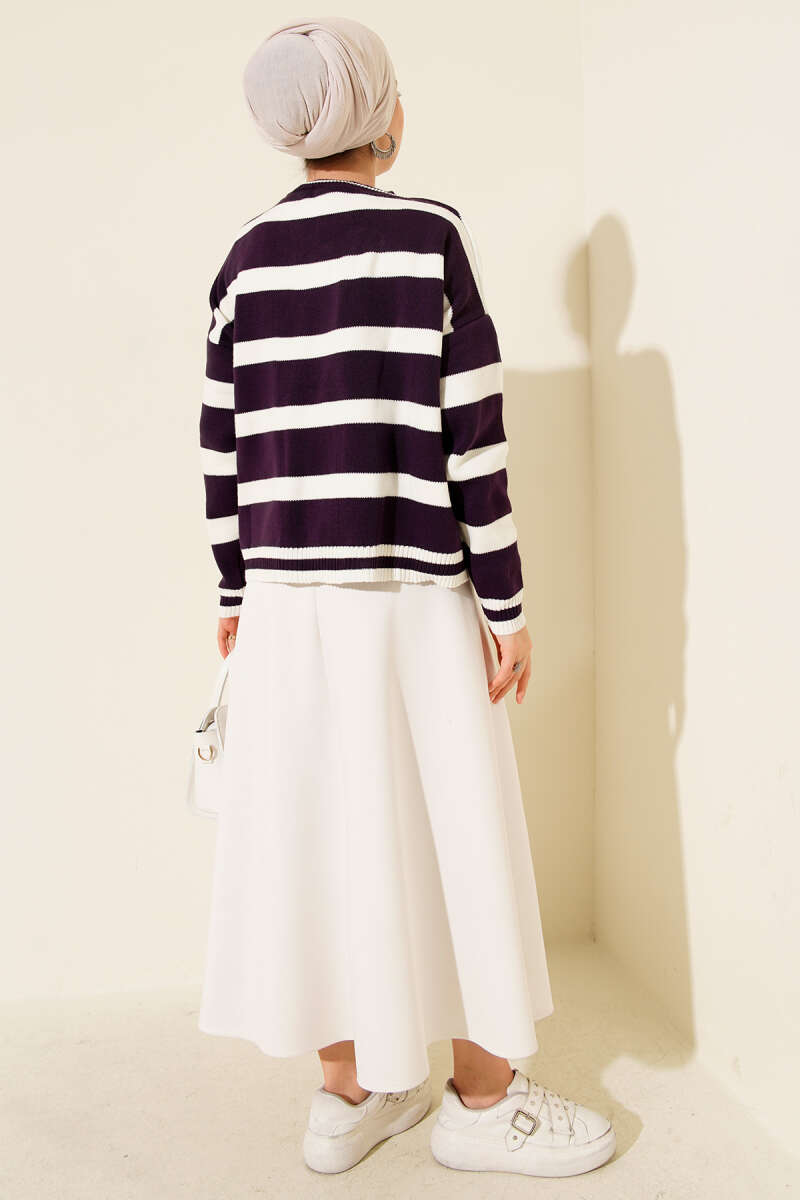 Saç Örgülü Düğmeli Triko Hırka Latte