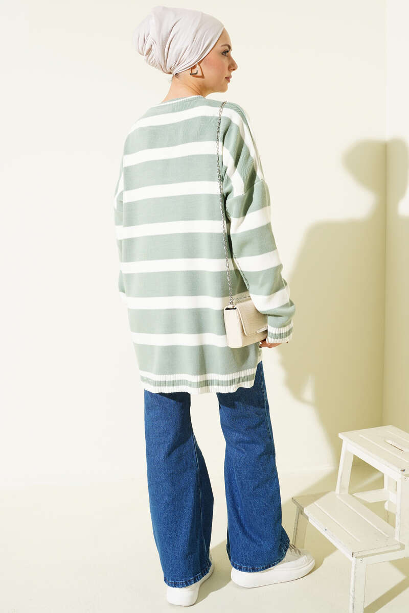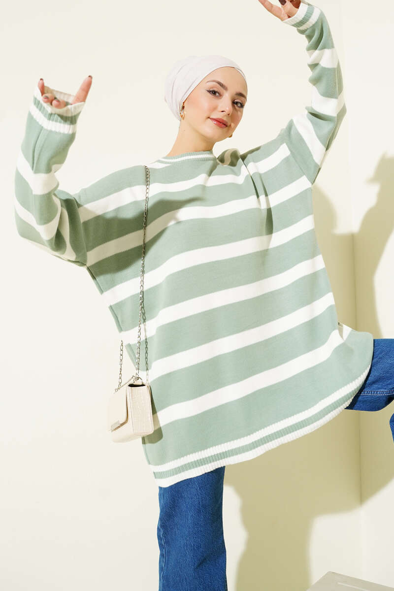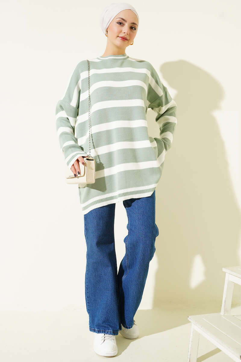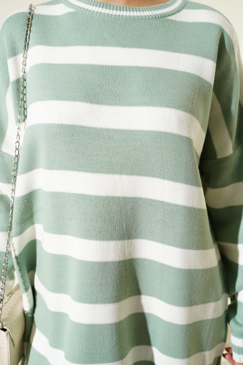 Yatay Çizgi Detaylı Triko Tunik Haki