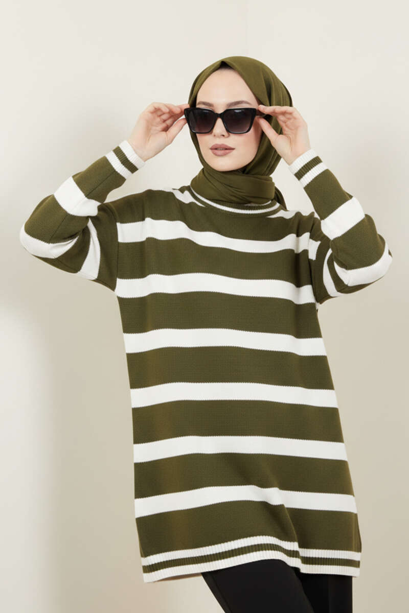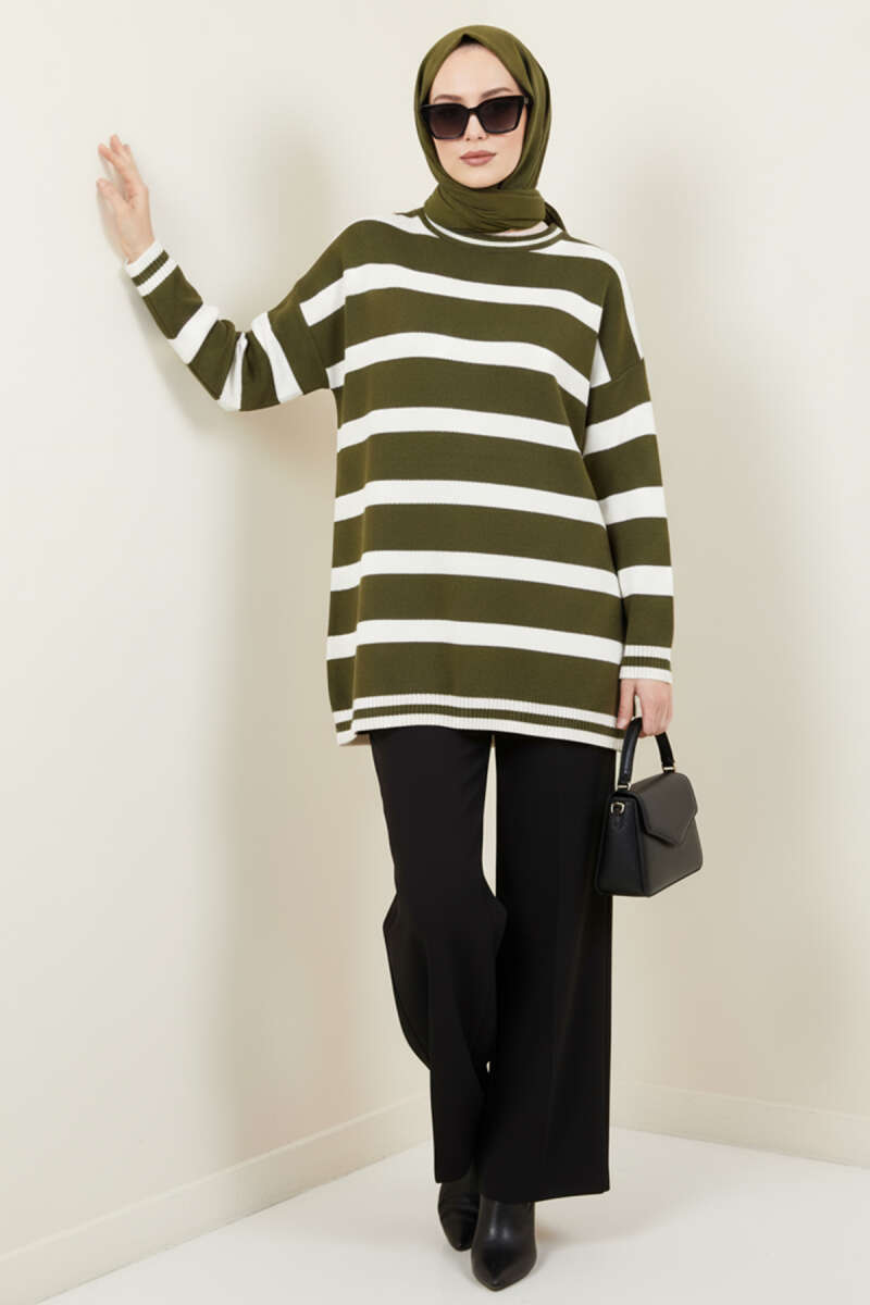Örgü Yandan Bağlamalı Triko Süveter Çağla Yeşili