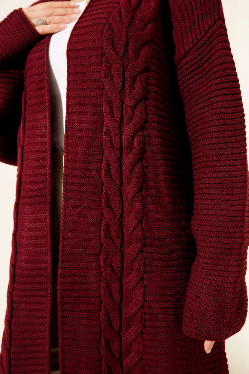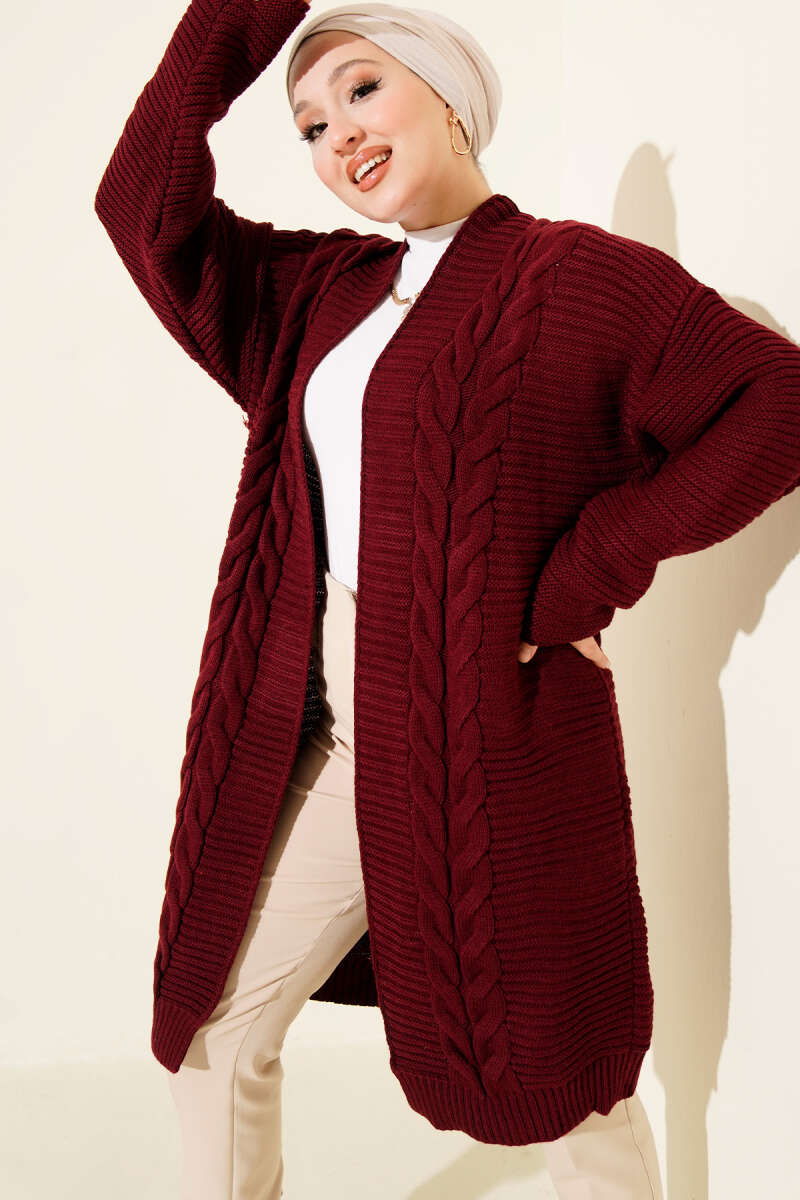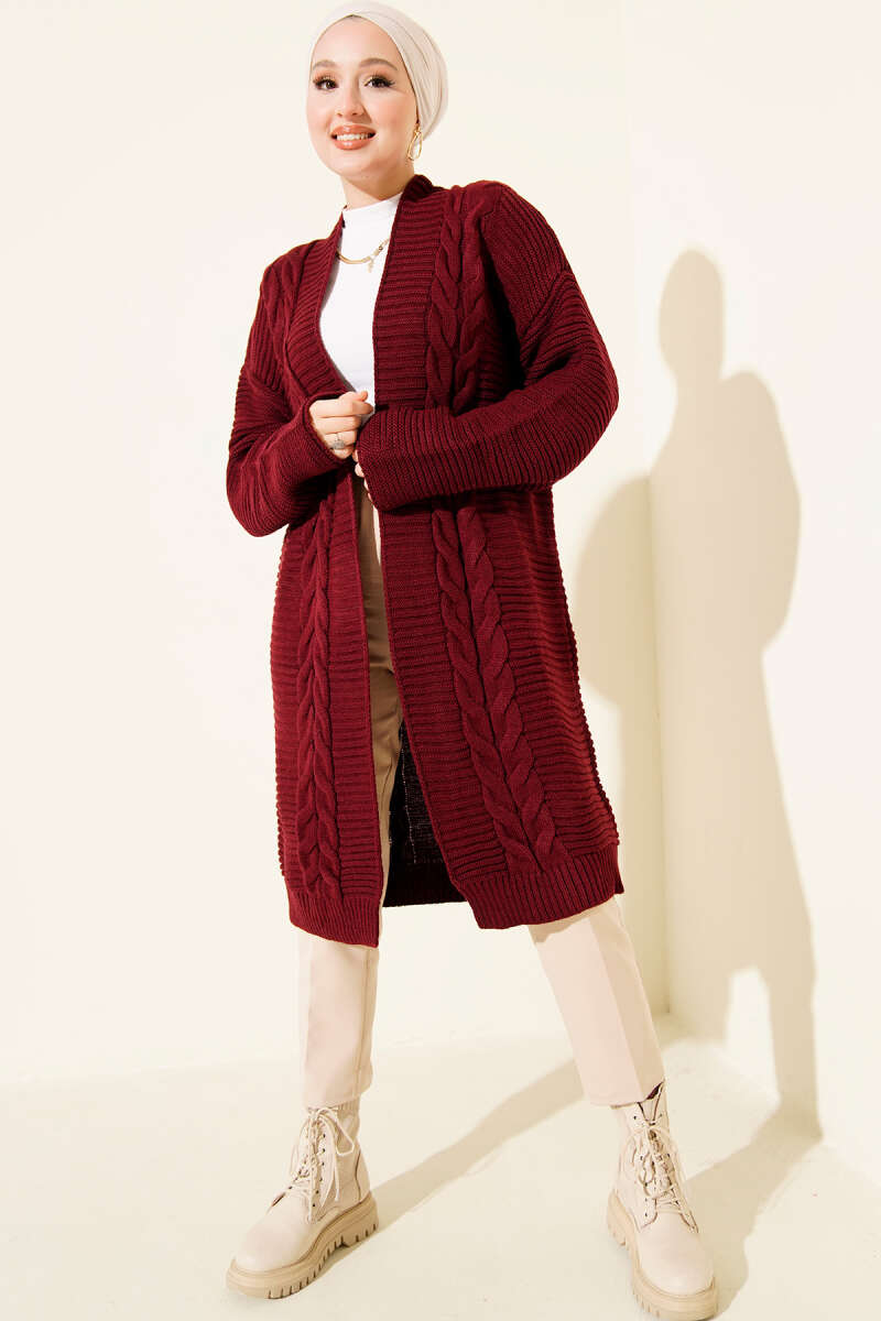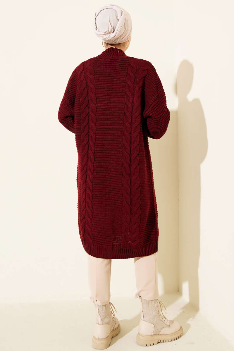 Yatay Çizgi Kabartmalı Triko Hırka Kahve